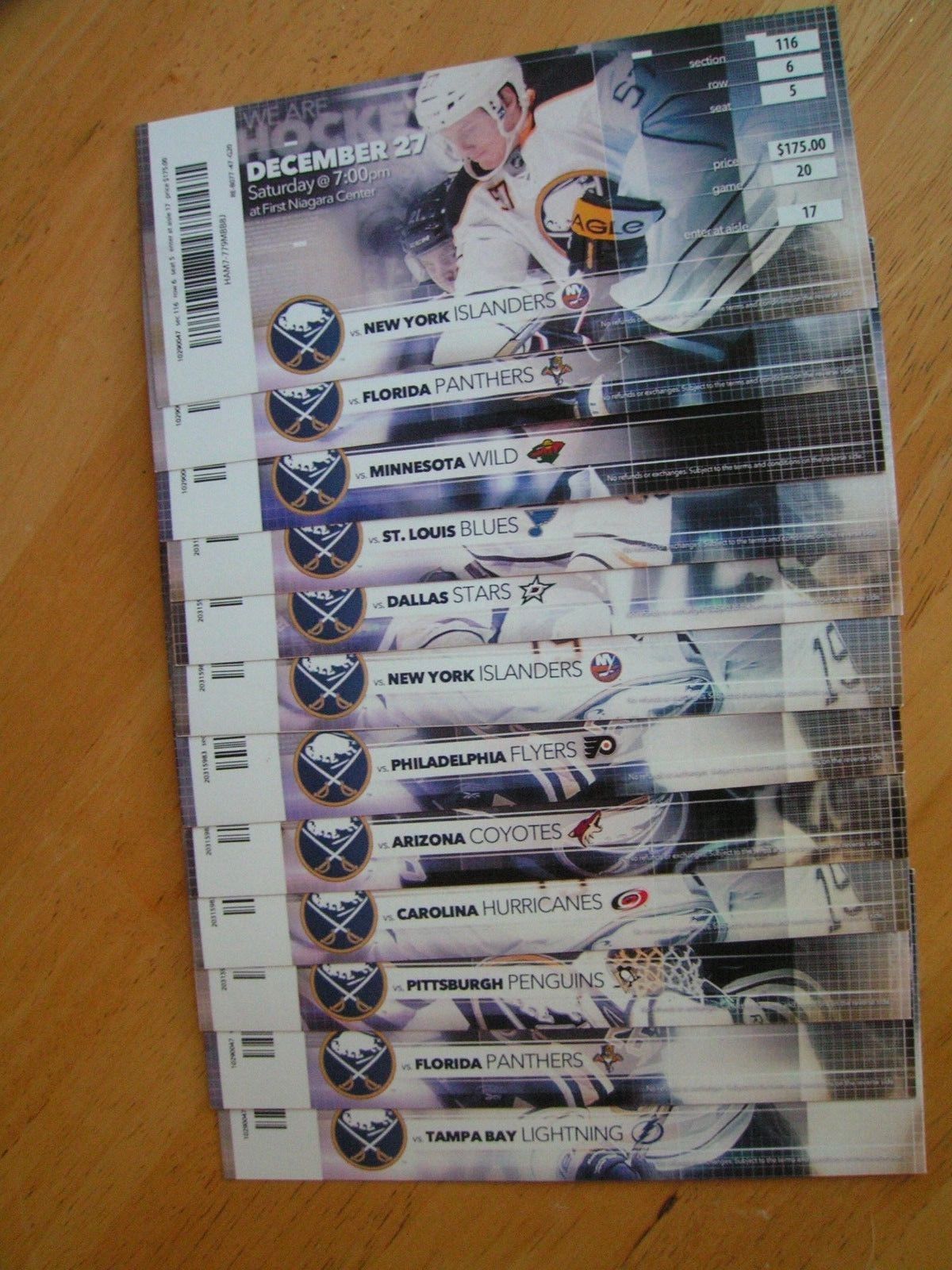 NHL 2014-15 Buffalo Sabres Full Unused Ticket Stubs