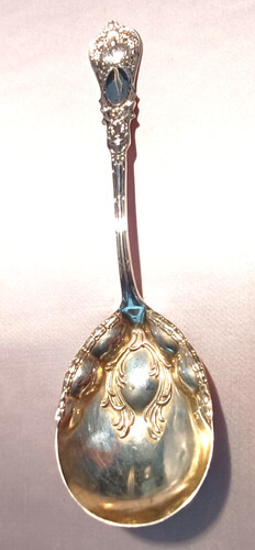 Sterling Silver PRESERVE SPOON GOLD WASHED SHELL BOWL 7 3/8" in the pattern NEW VINTAGE BY DURGIN . It is not monogrammed and is in excellent condition.