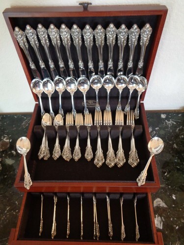 COMPLETE FLATWARE SETHOSTESS HELPERSHOLLOWWARE / TEA SETSMUSEUM QUALITY/FIGURAL SILVERFINE ESTATE VINTAGE JEWELRYMID-CENTURY MODERNSILVER FLATWARE SILVERWAREBuccellatiChristofleGeorg JensenNew Georg Jensen HollowwareNew Georg Jensen JewelryGorhamInternationalLuntMichael Aram - NewReed BartonTiffany Co.TowleWallaceWhitingPLACE SETTINGS