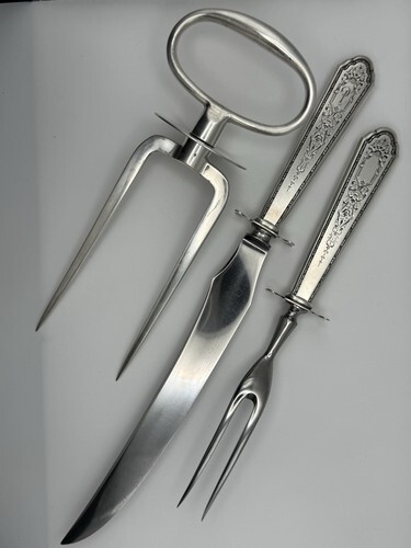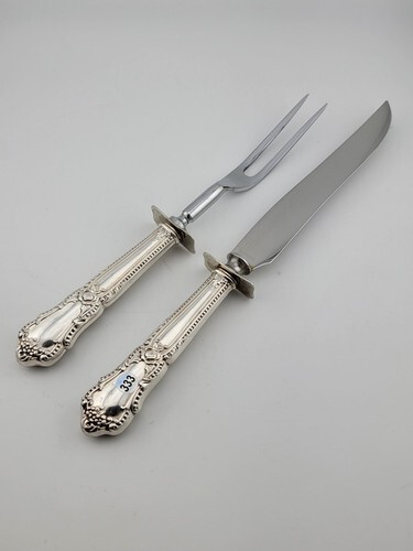Sterling Silver hollow handle with stainless blade ROAST CARVING KNIFE 14 1/4" in the pattern CHATEAU BY CARRS. It is NOT monogrammed and is in excellent condition.