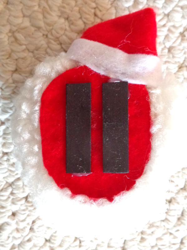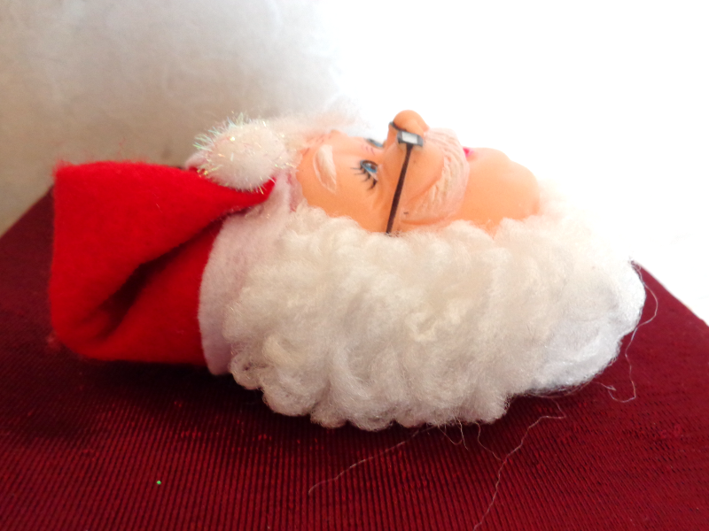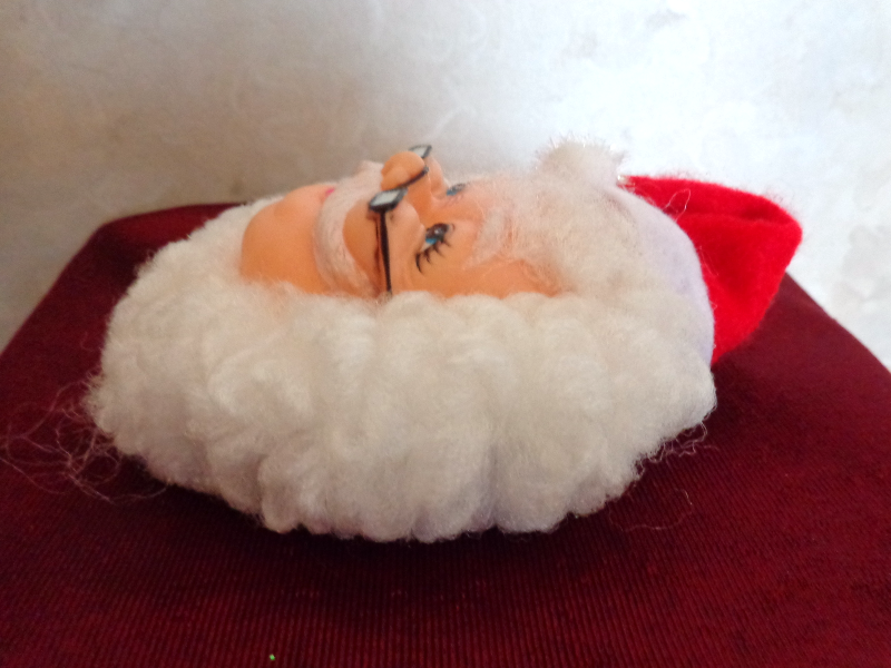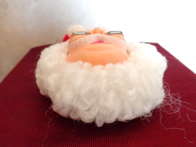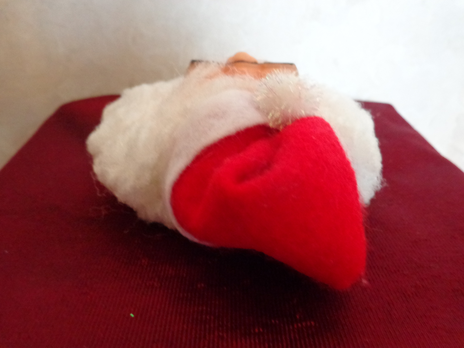 This is a Large Santa Refrigerator Magnet (#2781) Santa has a Soft Fuzzy White Beard with a Red Felt Knit cap and measures approximately 5 inches by 4 inches. His face is made of rubber. He attaches with 2 magnets on the back. It is used, so please see pix for a complete description.