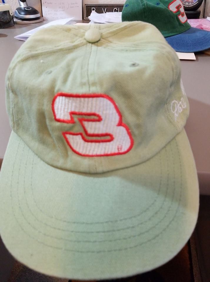 Dale Earnhardt #3 on a faded lime green ball cap with signature on the side and rear adjustable strap. One of akind..