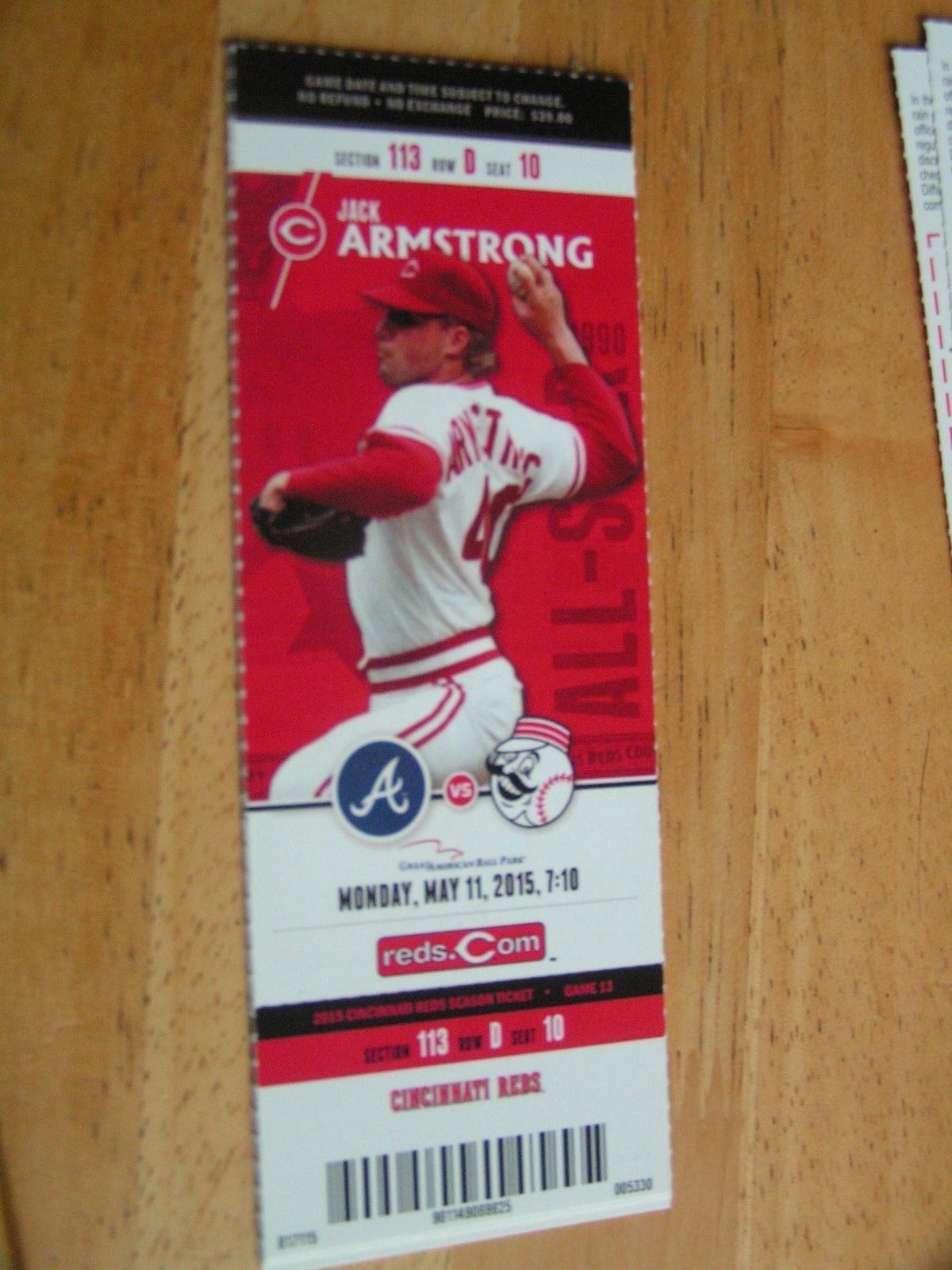 MLB Cincinnati Reds Full Unused Ticket Stub Atlanta 5/11/15 (J. Armstrong)