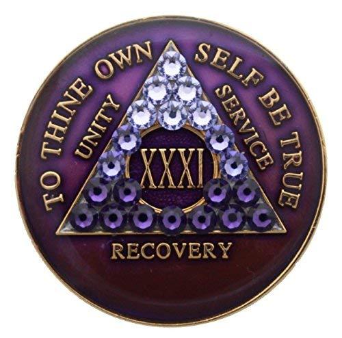 10 Year Purple Transition Swarovski Crystals Tri-Plate Alcoholics Anonymous Meda