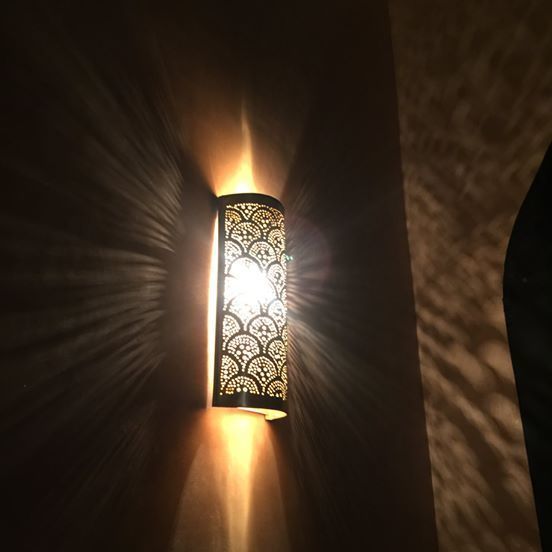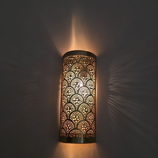 Brass wall light that allows to diffuse a beautiful reflection through its beautiful openwork and to illuminate your interior.