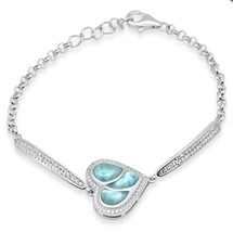 Sterling Silver Natural Larimar and CZ Heart Bracelet