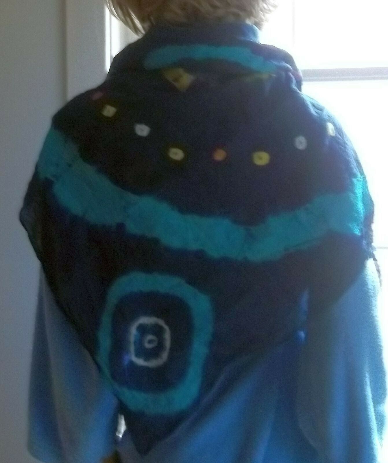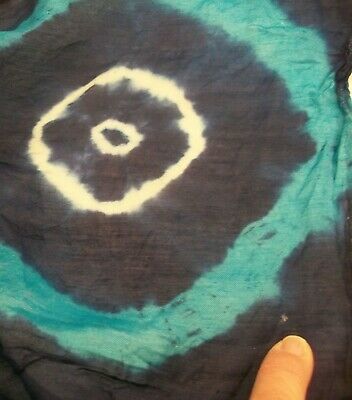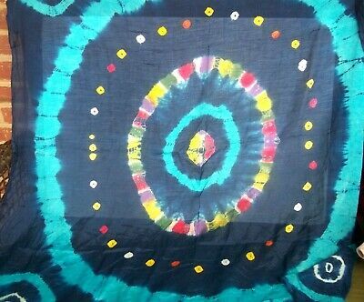 Batik Rayon Scarf Concentric Circles Navy Turquoise Bullseye 40 Inches