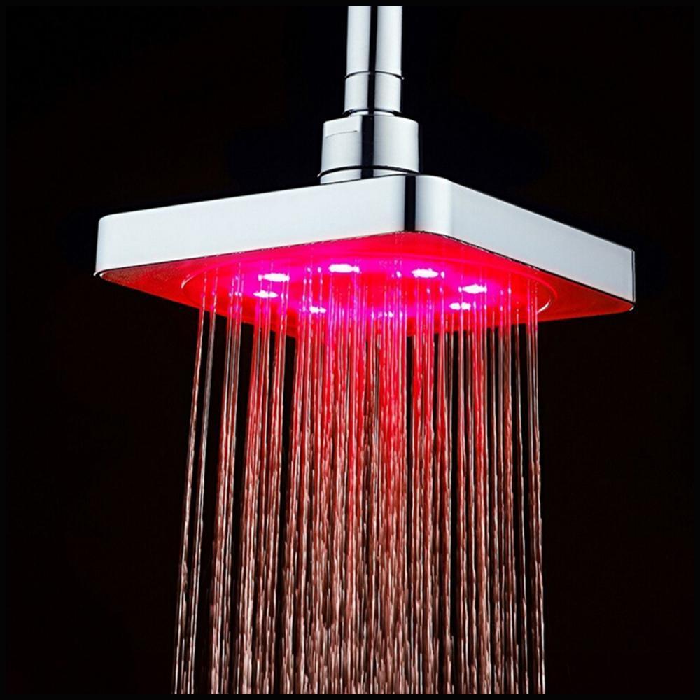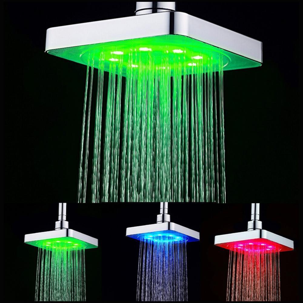 6 Inch Square 7 Colors Changing LED Shower Head Bathroom Rainfall Spray Heads