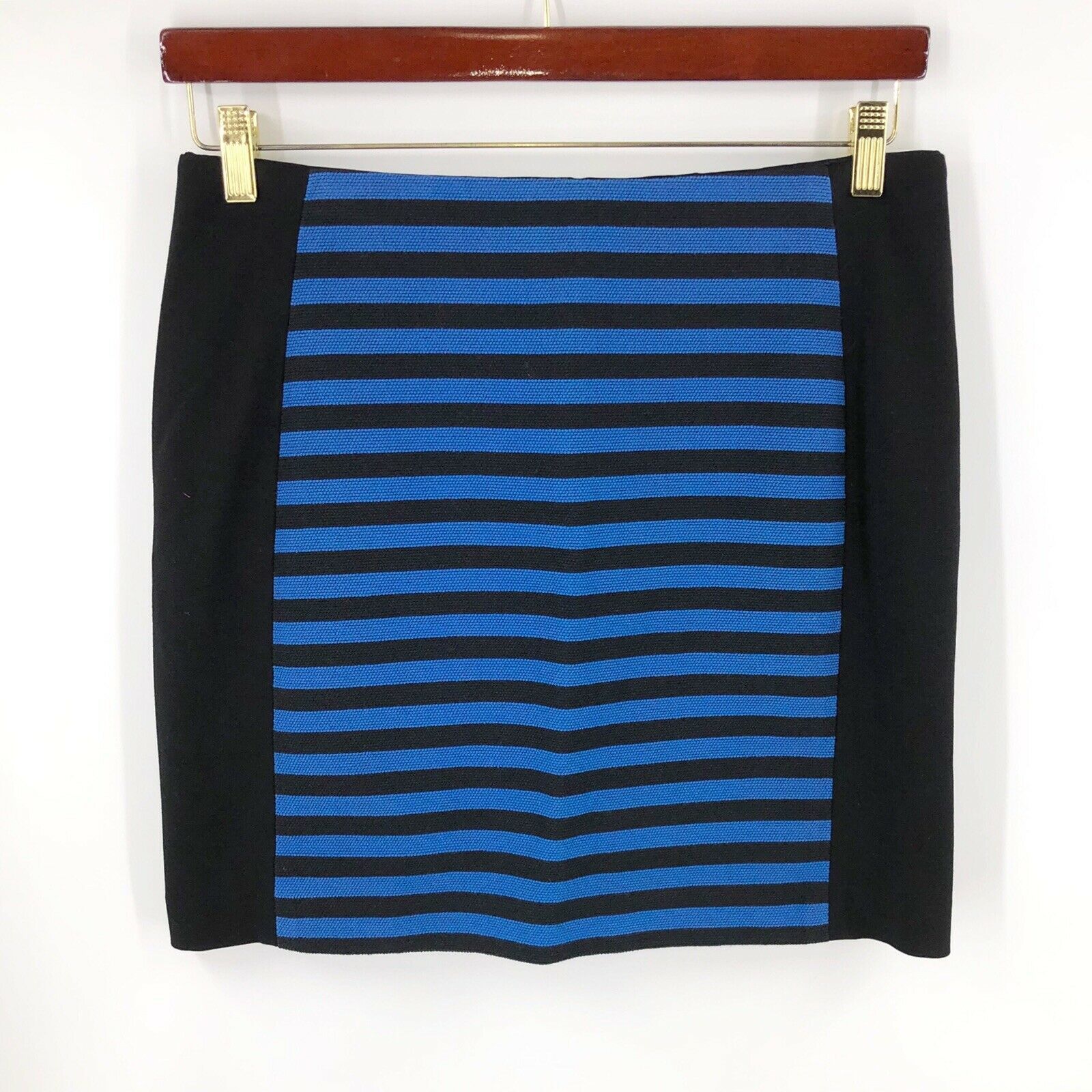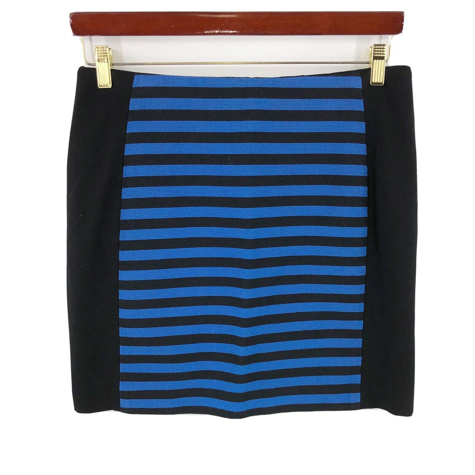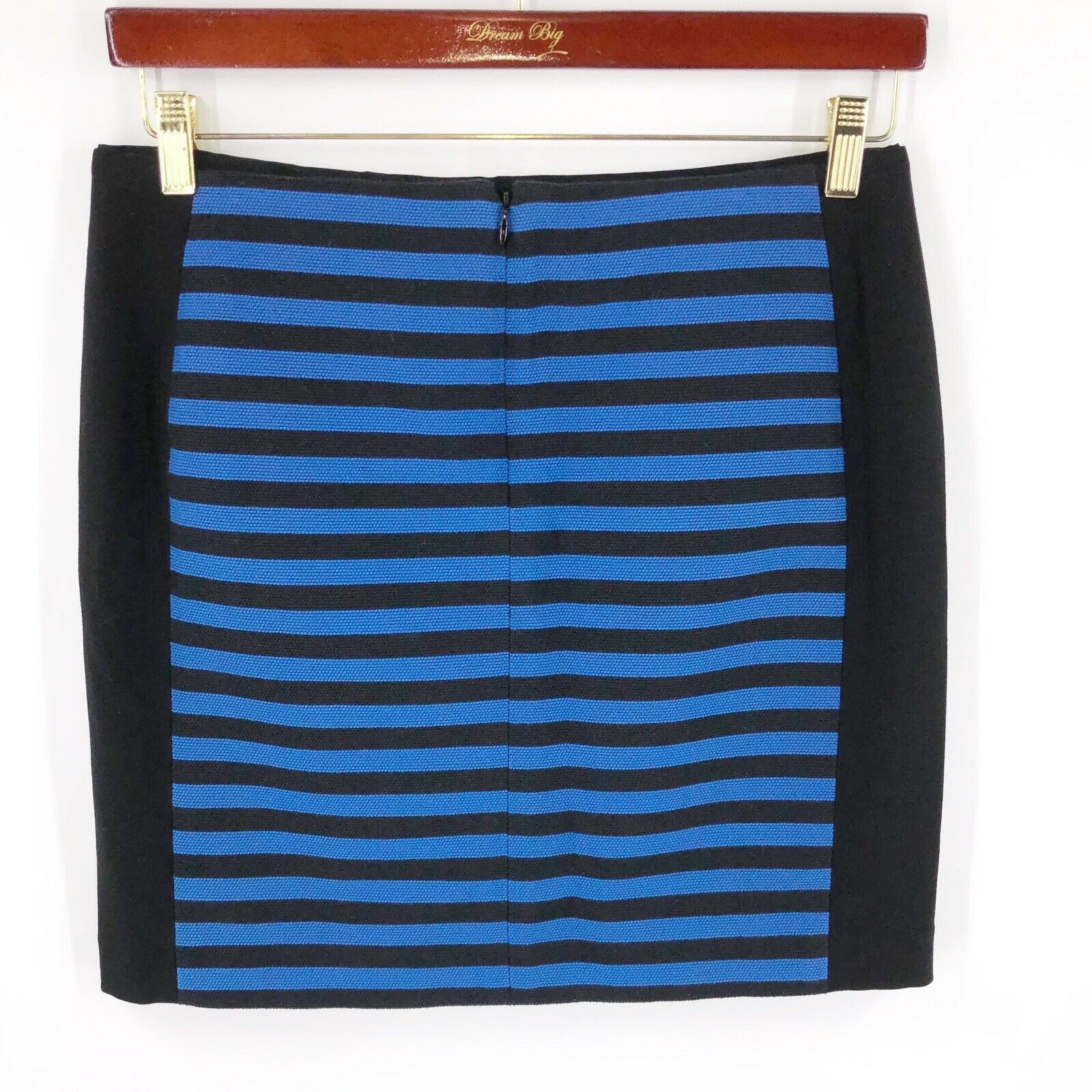 Ann Taylor Skirt Size 10 Petite Black Blue Striped Illusion Mini Pencil Back Zip
