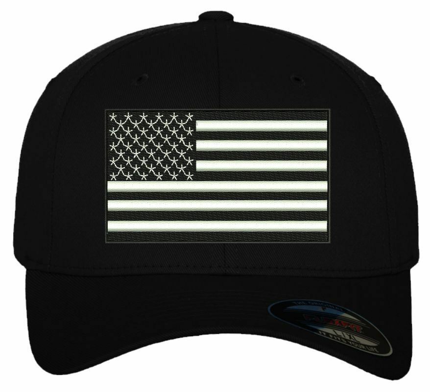 Police Hat Flex Fit Embroidered Hat with Black White USA Flag Flex Fit Hat