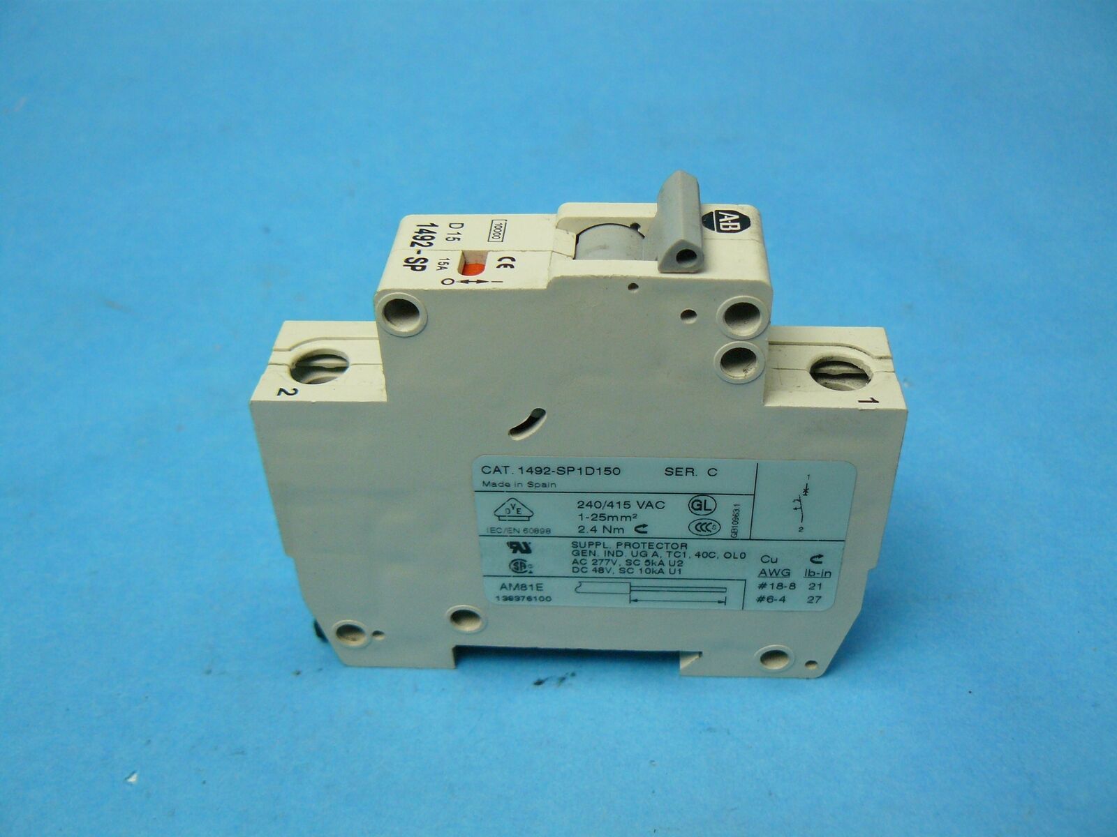 Allen Bradley 1492-SP1D150 DIN Rail Circuit Breaker 1 Pole 15 Amps 277VAC 48VDC