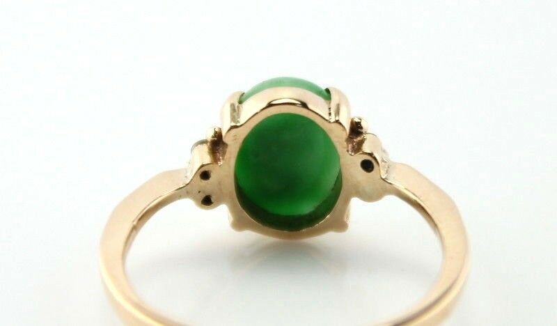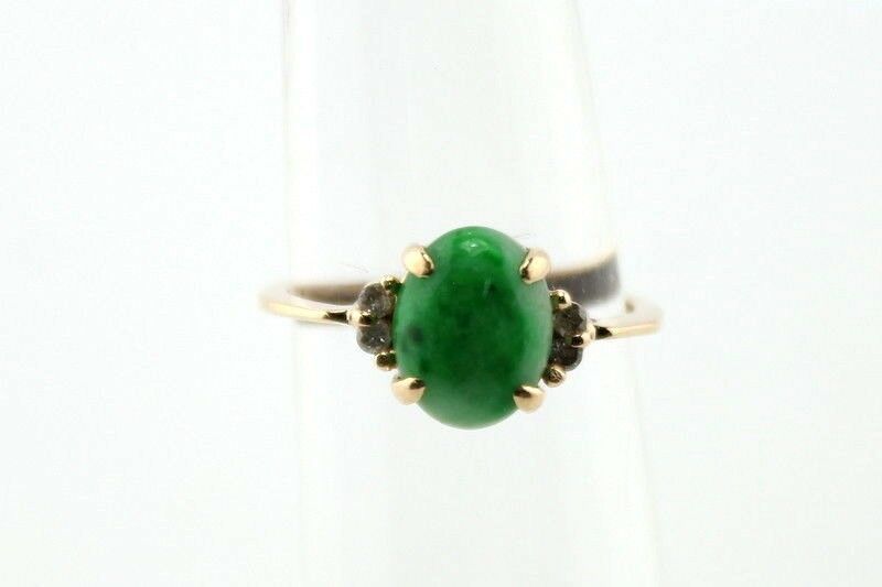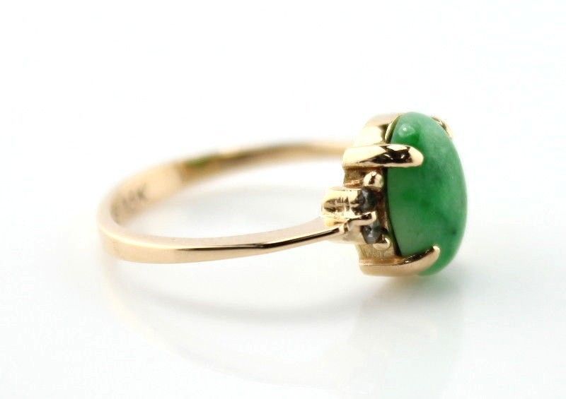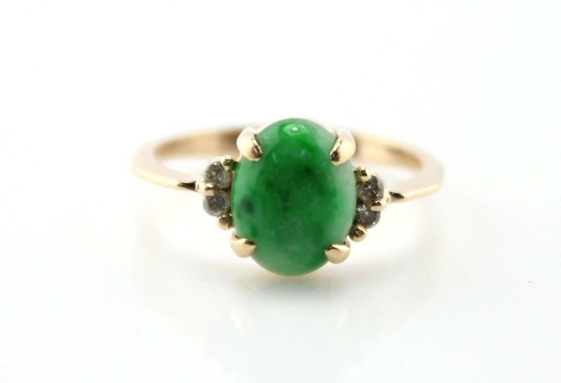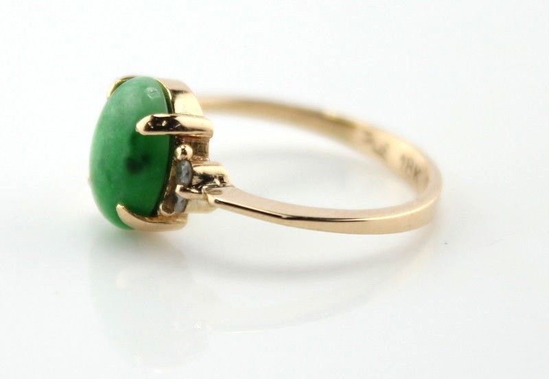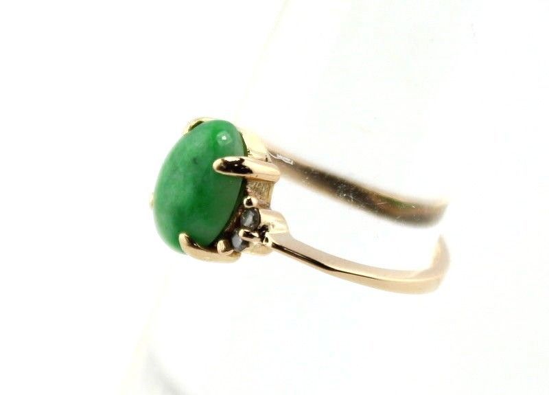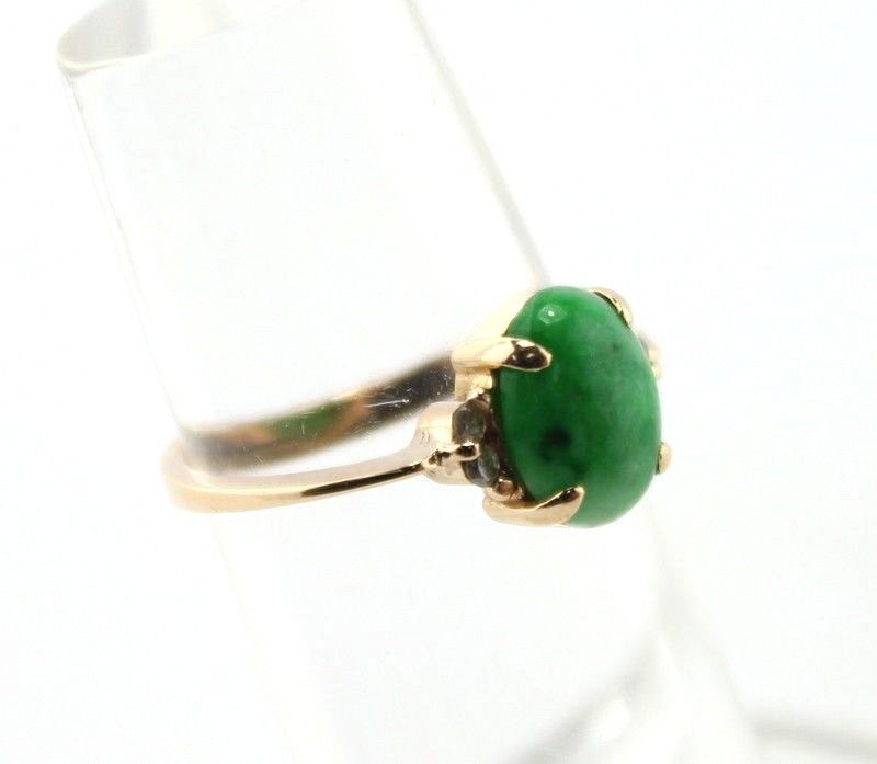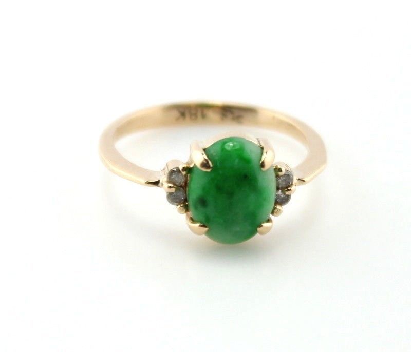 VINTAGE 18K YELLOW GOLD JADE & .04 CTW DIAMOND COCKTAIL RING SIZE 6- #3582-1