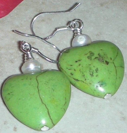 THIS AWESOME EARRINGS ARE 100% HANDMADE. GENUINE TURQUOISE Hearts and Fresh Water Pearls