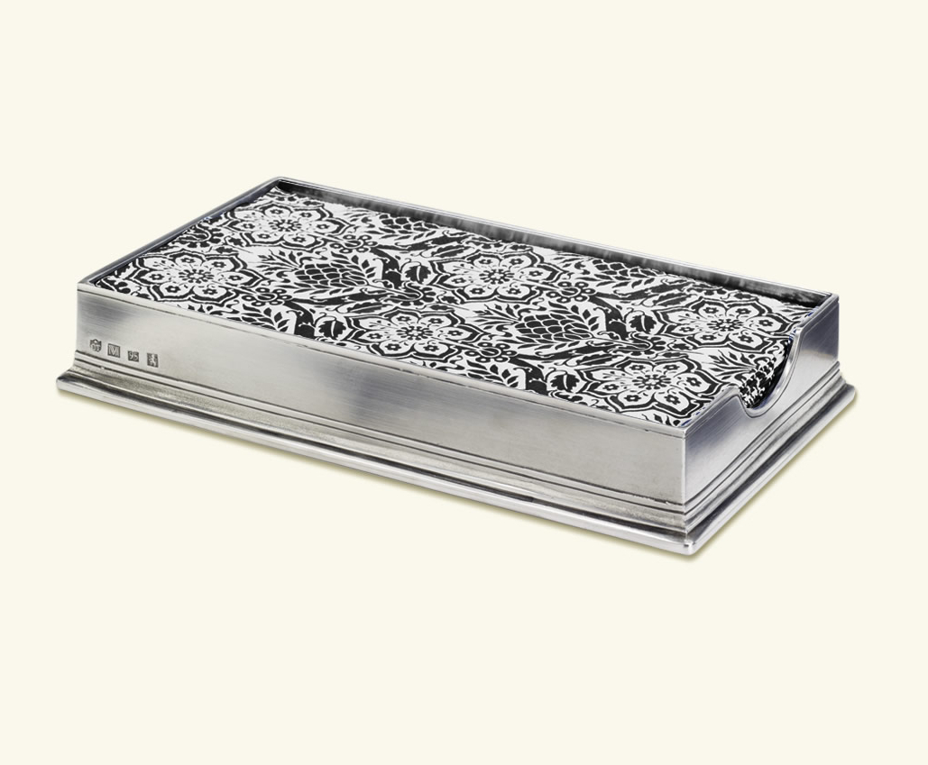 Match Pewter Dinner Napkin / Guest Towel Holder, item # 1284.0. Made in Italy. Approximate dimensions 9.3"L x 5.3"W x 1.6"H