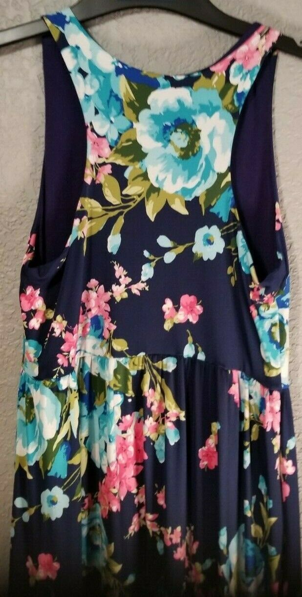 Bella Blue Floral Long Tank Dress with Pockets size S
