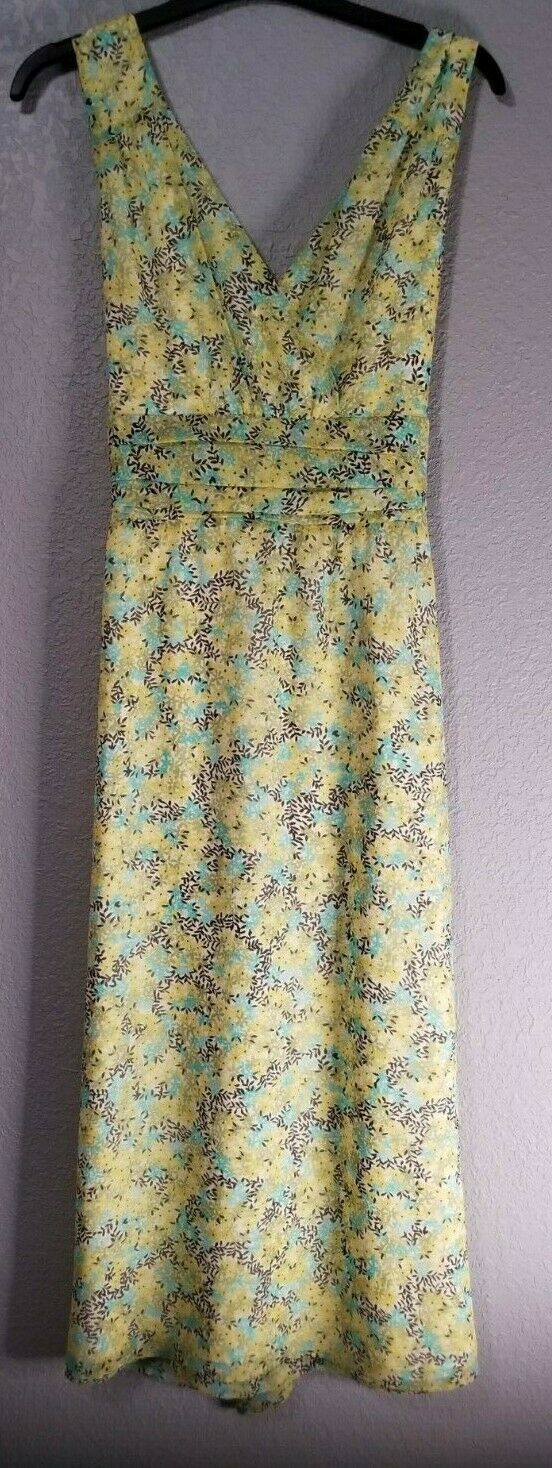 Beautiful Liz Claiborne Flowing Measures 17 underarm x 47 Long. Green/yellow/blue/brown Floral Villiager (Liz Claiborne) side zipper size 12. Condition is Pre-owned. Shipped with USPS Priority Mail.