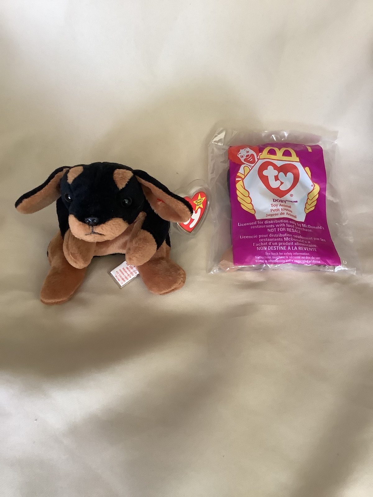 NOTE!! Like with most other collectibles, with Ty Beanie Babies, finding a Complete Set with a specific trait often creates a collection that is more valuable than the sum of its parts. (This pertains to the following Listing Below It consists of the following 2 Investment Quality Doberman Beanies Below )