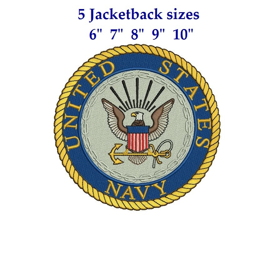 US Navy Jacketback sizes Digitized filled embroidery design Digital Download