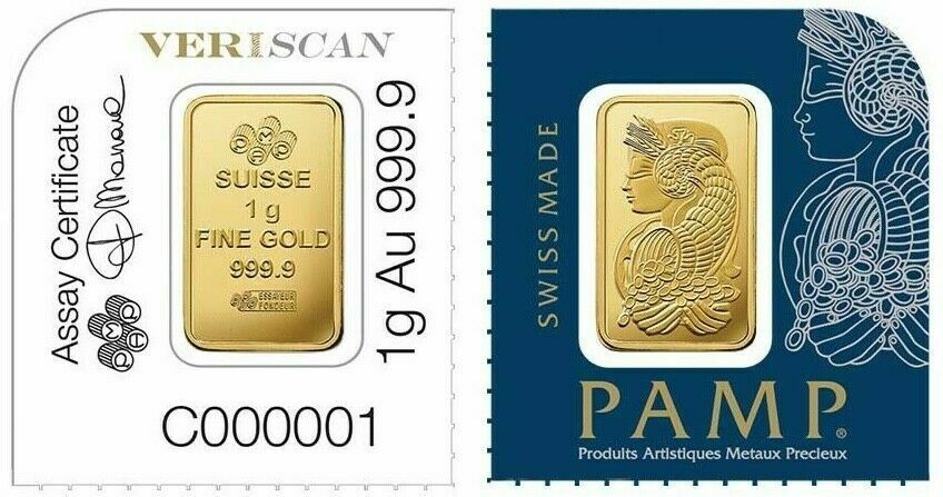 PAMP SUISSE Gold 1 Gram Bar - 24KT .9999 Fine - In Veriscan Assay!