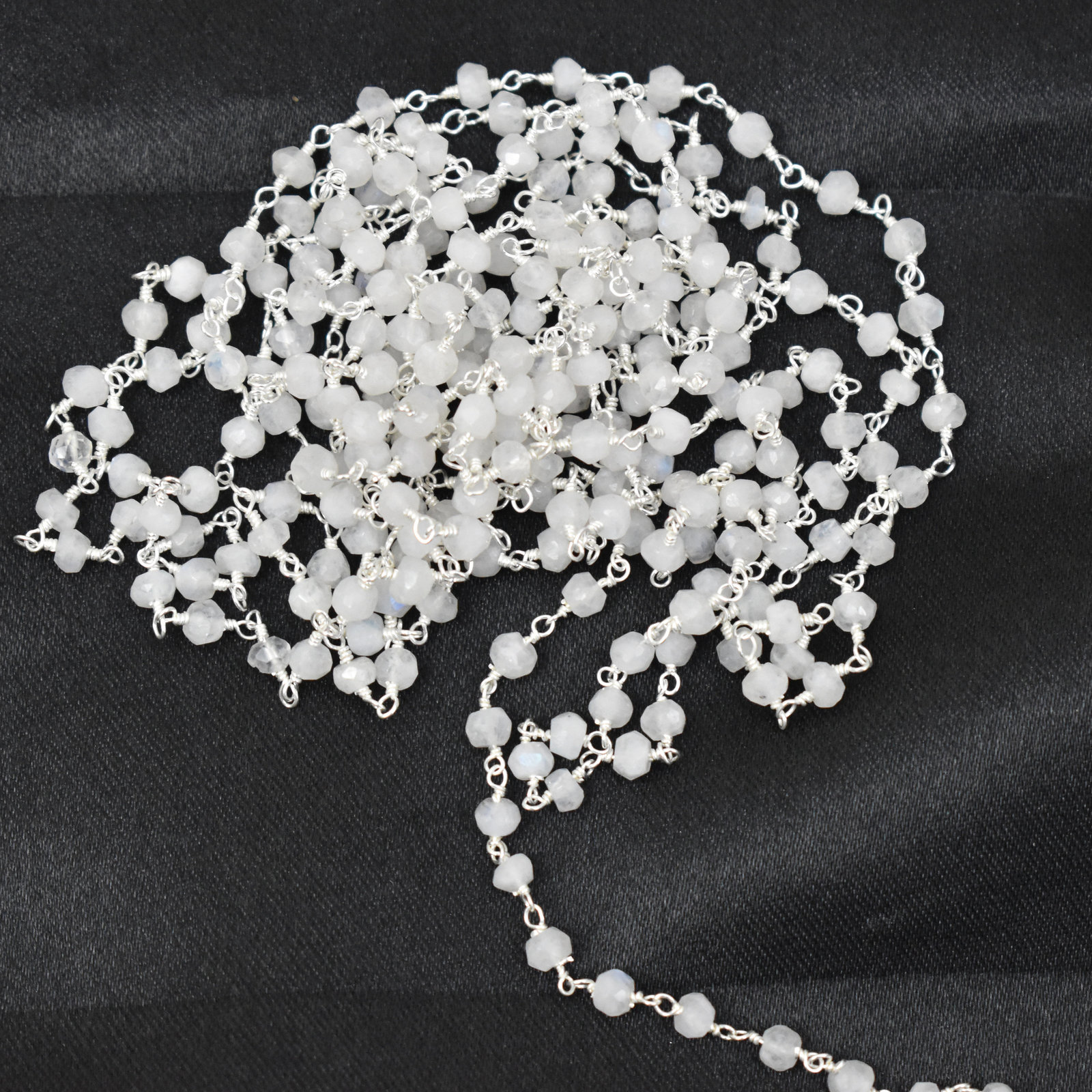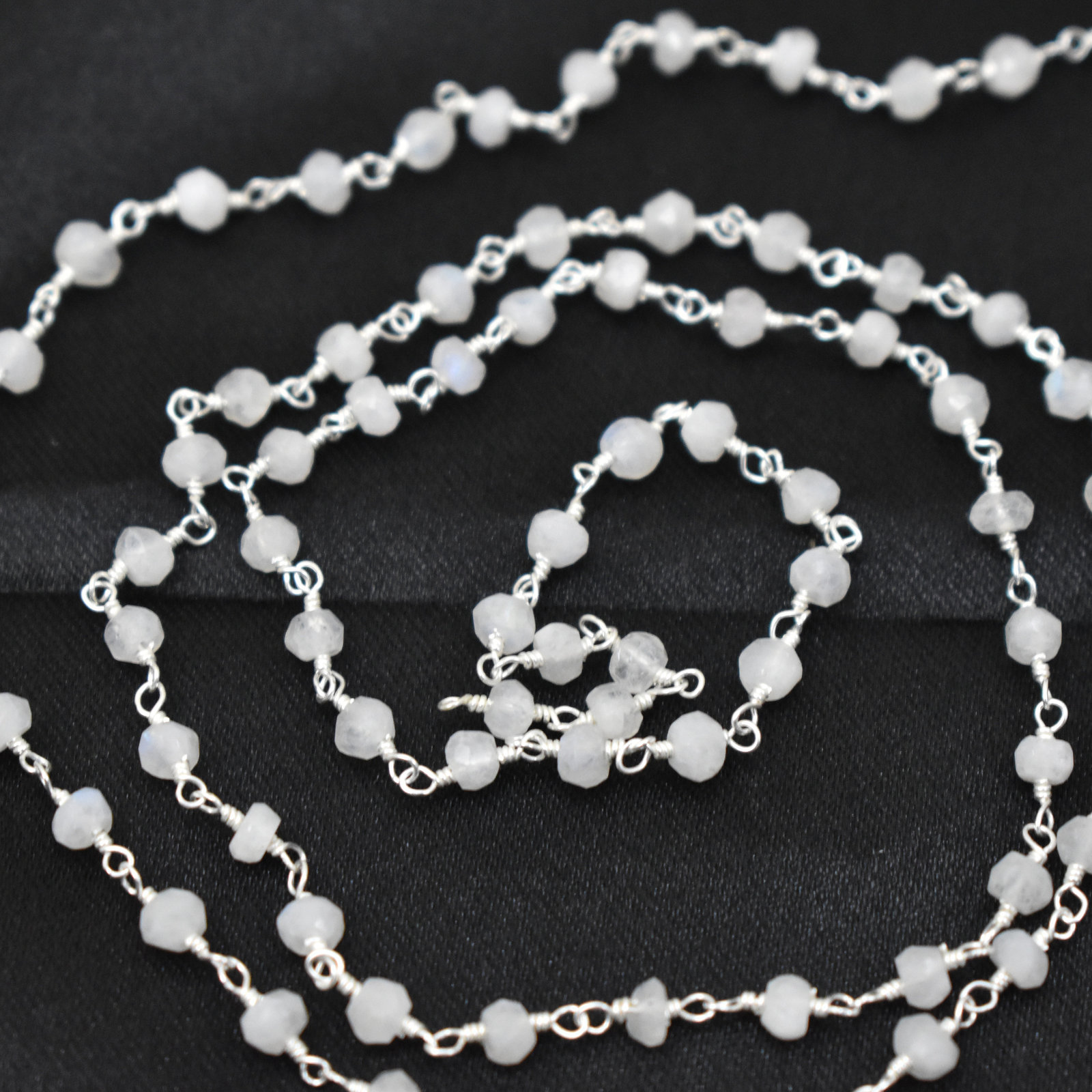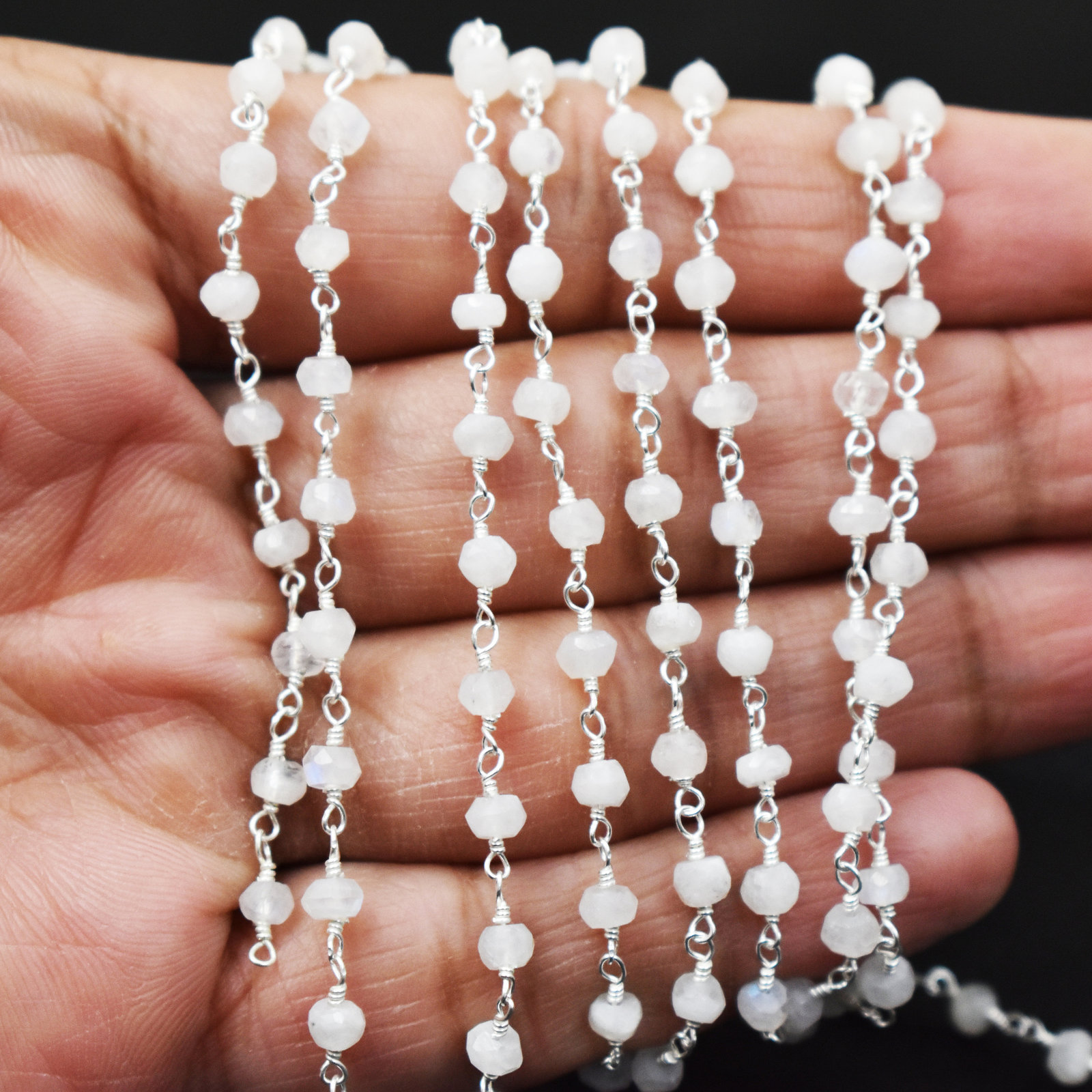 Rainbow Moonstone Rosary Chain-Rainbow Moonstone Gemstone Beaded Chain-Wire Wrapped Chain-3.50 mm to 4.00 mm Roundel Faceted Cut Gemstone Link Chain By Foot-Rainbow Moonstone