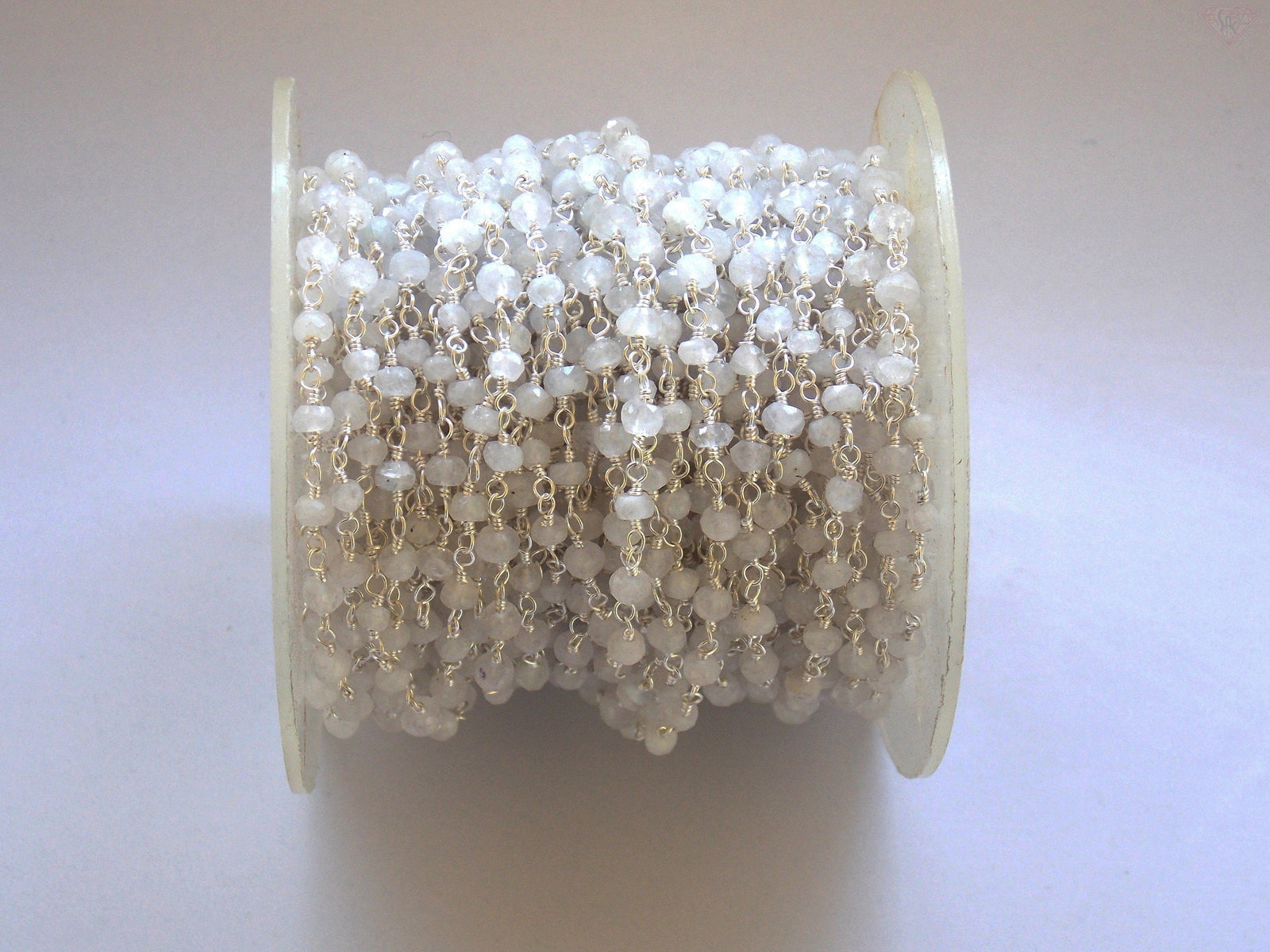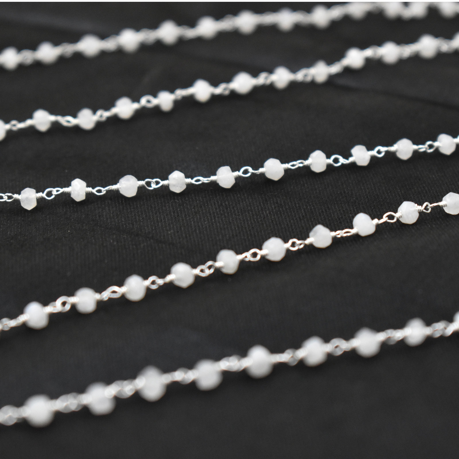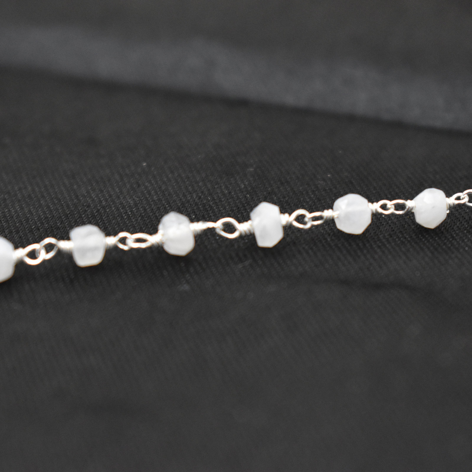 Rainbow Moonstone Rosary Chain-Rainbow Moonstone Gemstone Beaded Chain-Wire Wrapped Chain-3.50 mm to 4.00 mm Roundel Faceted Cut Gemstone Link Chain By Foot-Rainbow Moonstone