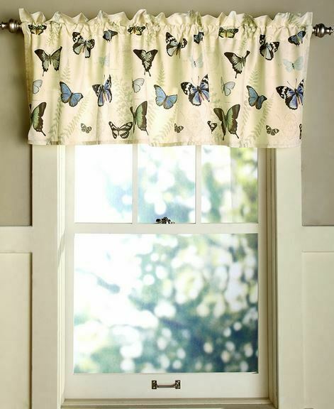 This decorative valance has a variety of colorful butterflies on a neutral background that should work well will almost any color scheme. Butterfly lovers are sure to enjoy seeing this hung in any room in the house. Measure 60 inches by 18 inches.