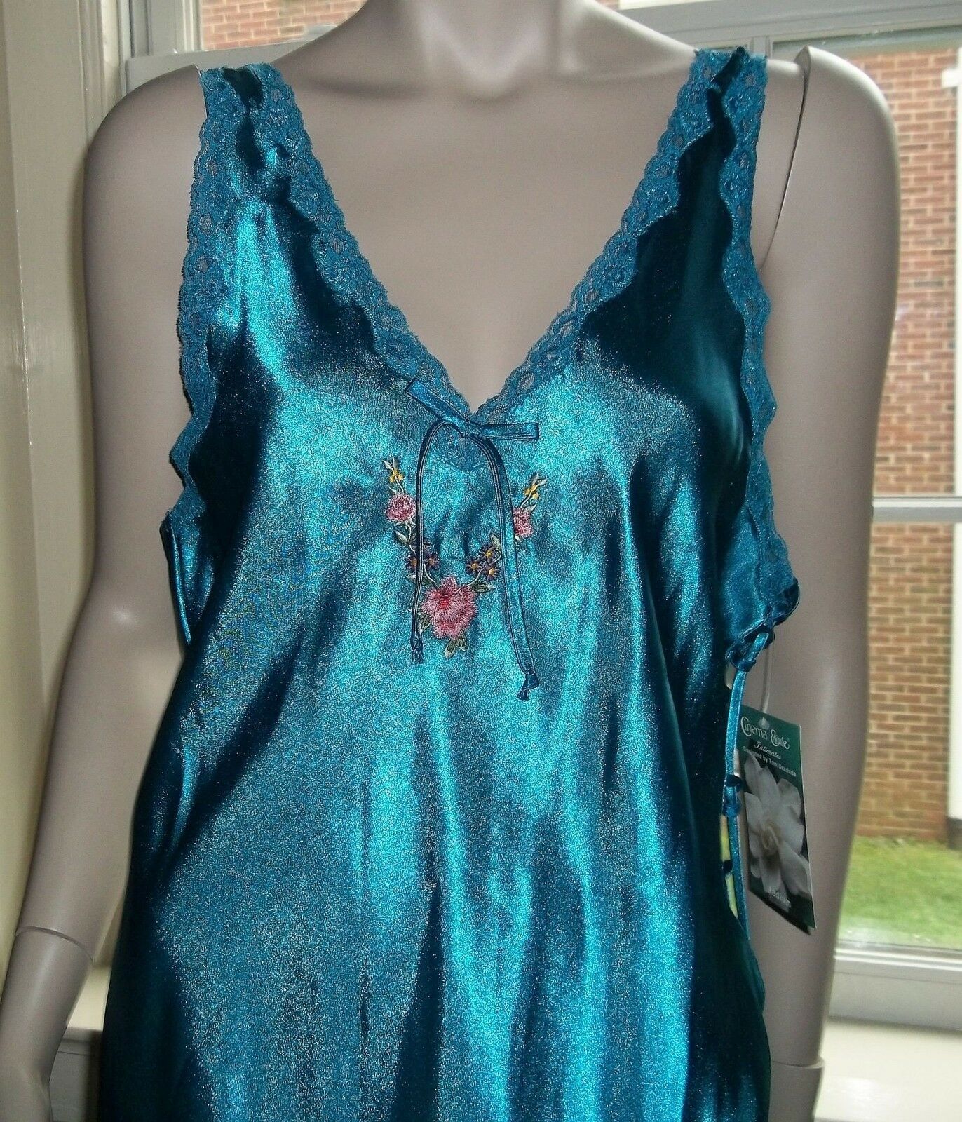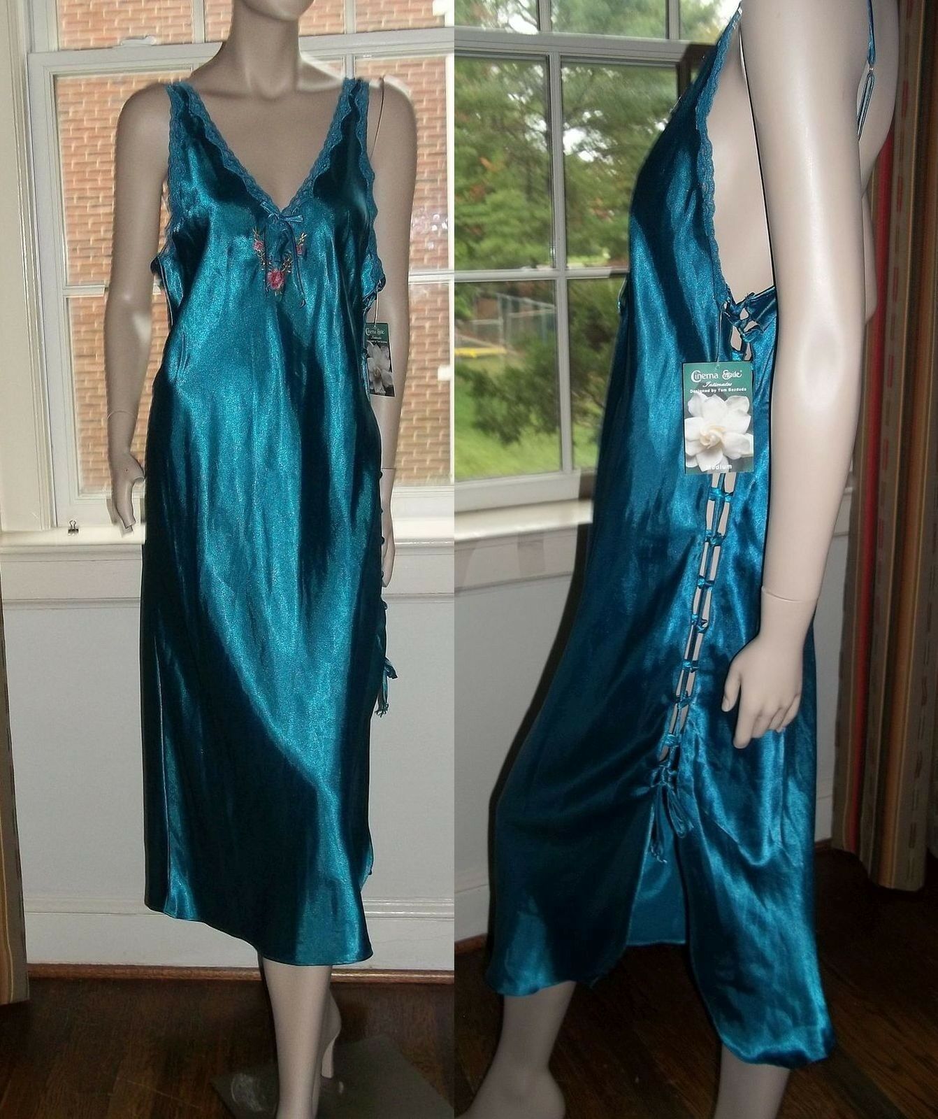 Teal Embroidered M Cinema Etoile NWT Long Nightgown Tom Bezduda Side Loops Sexy