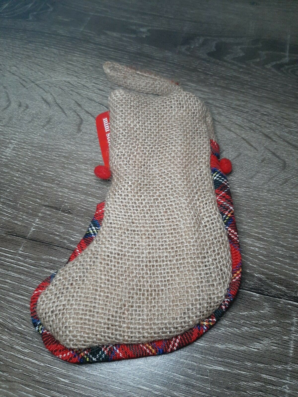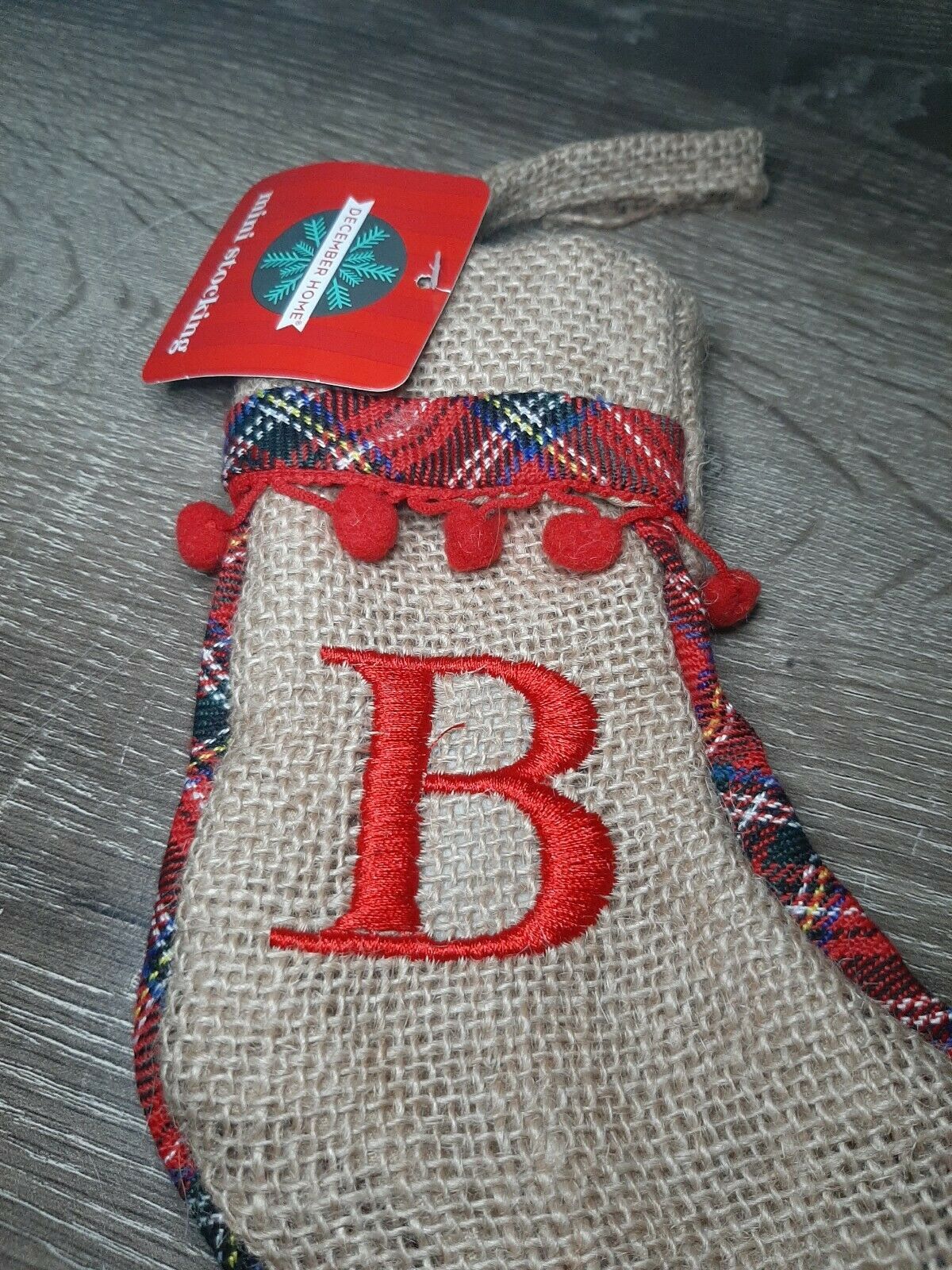 (1) December Home Mini Stocking, Red Plaid Burlap, B initial. Condition is "New". Shipped with USPS First Class Mail within 24 hours.