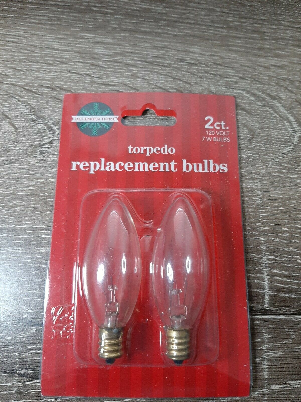 (1) December Home Torpedo Replacement Bulbs 120 volt 7w bulbs. 2 pack. Condition is "New". Shipped with USPS First Class Mail within 24 hours.