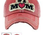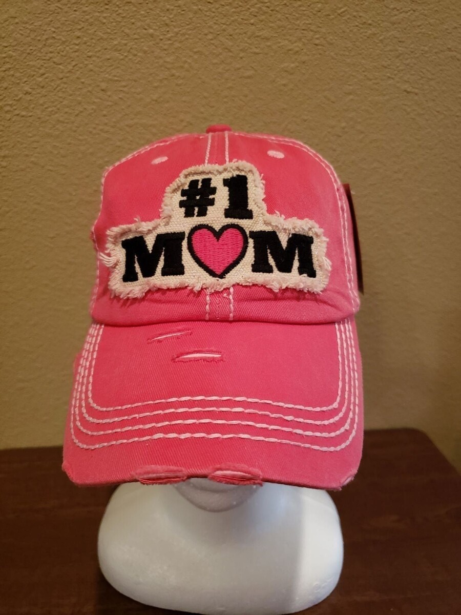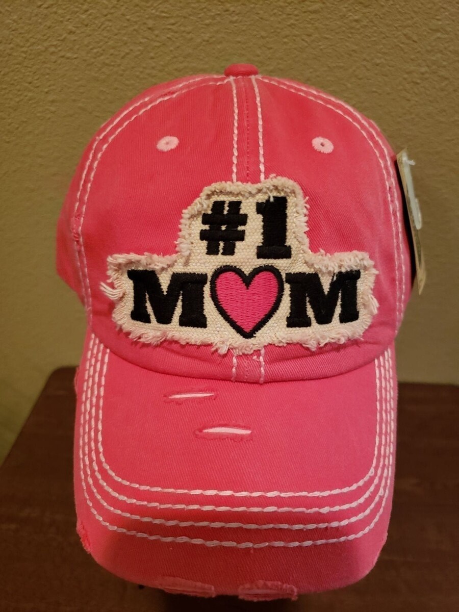#1 MOM Baseball Cap Distressed Red Coral NWT