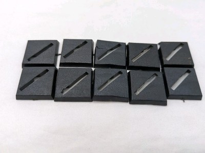 - (10) *Damaged* Games Workshop 1984 20MM Black Bases With Slanted Slot