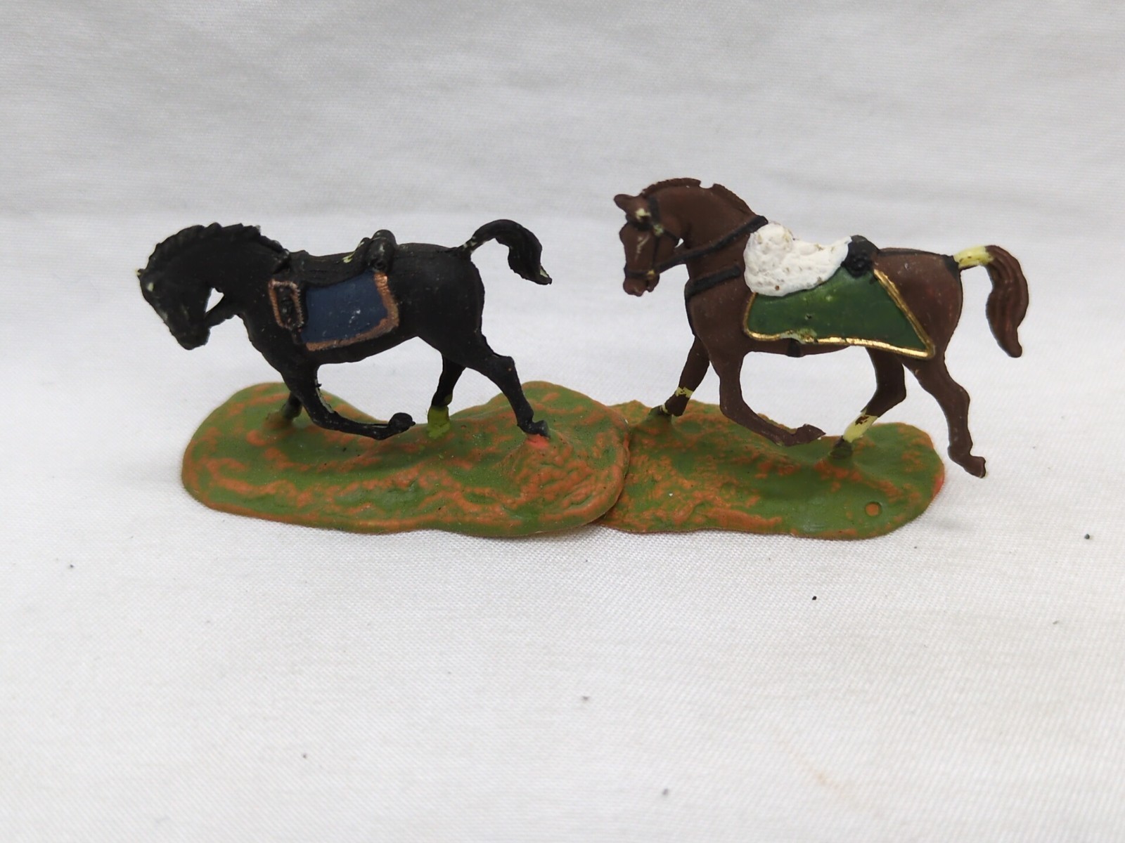 There's some marks, wear, and some paint chipping, see pictures please. The riders need to be reglued on the horses.