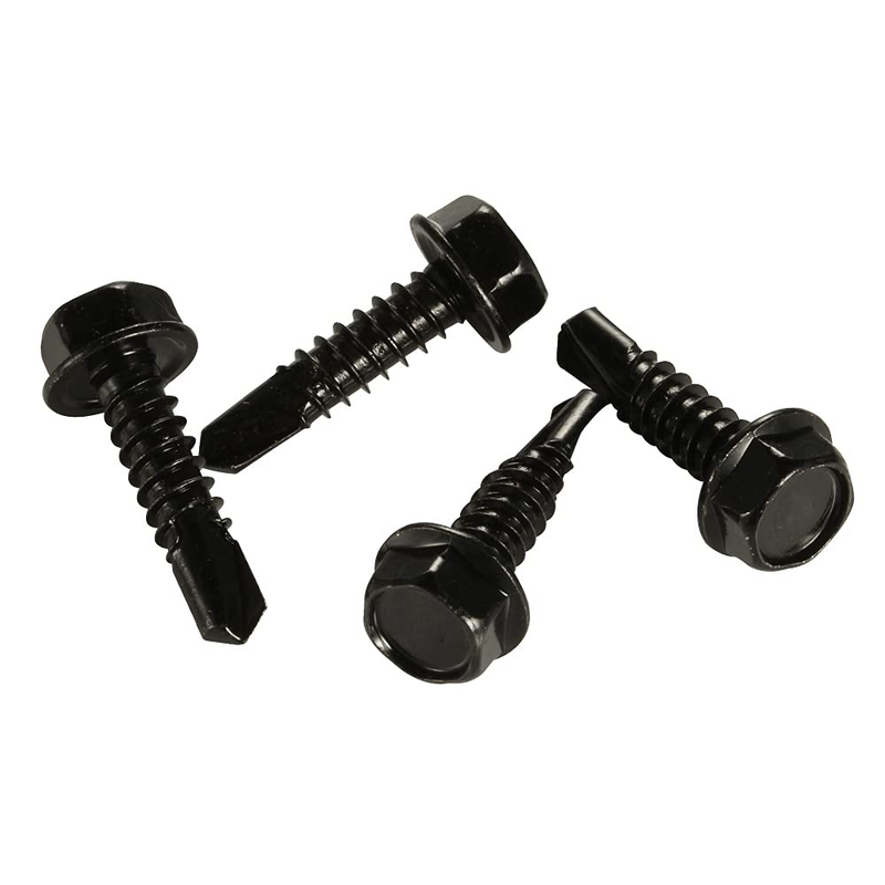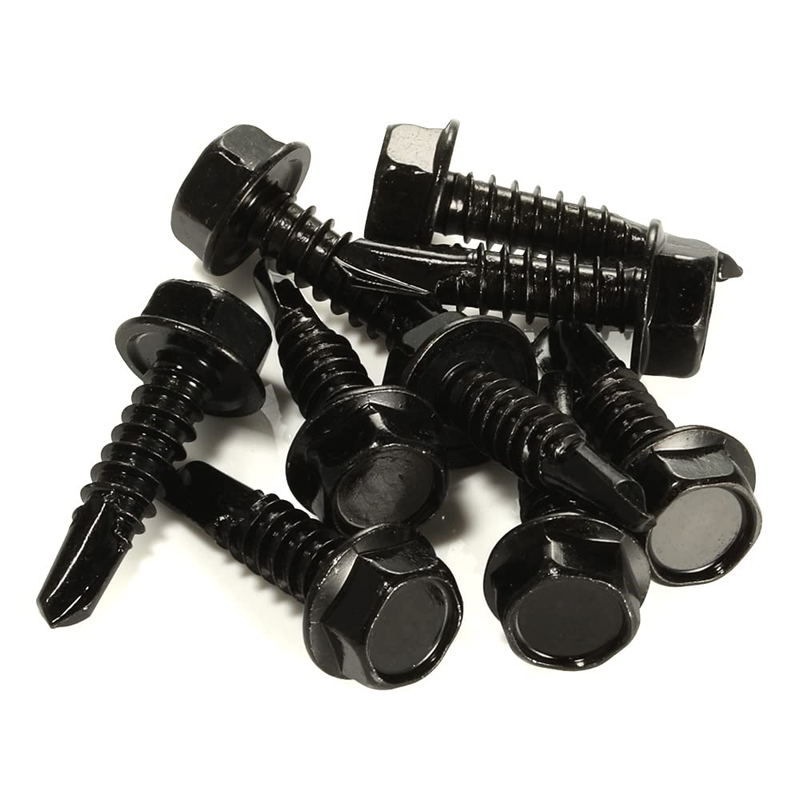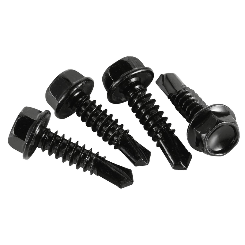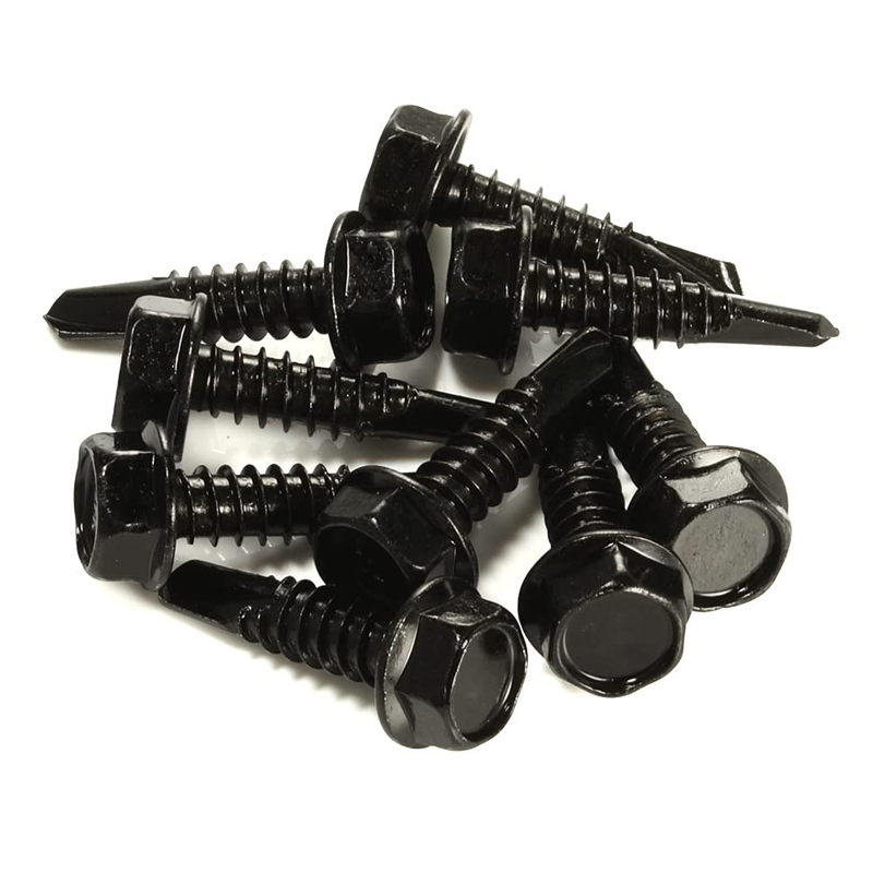 #14 X 3/4" Hex Washer Head Self Drilling Screws, Self Tapping Sheet Metal Screws, 410 Stainless Steel, Black Finish, 50 PCS