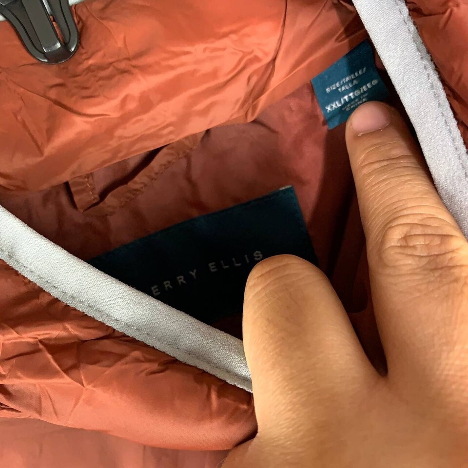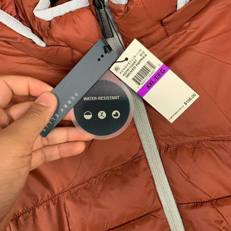 - $150 Perry Ellis 2XL Puffer Jacket Removable Hoodie Orange New Men