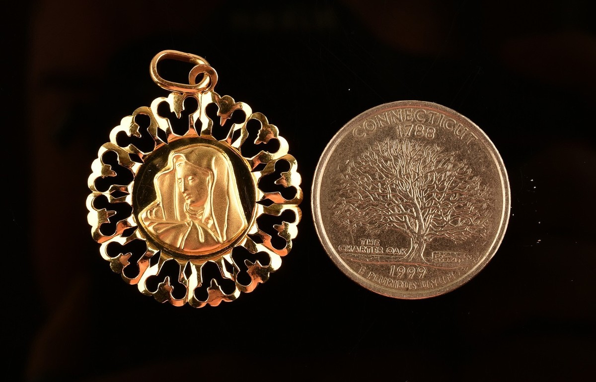 - *18k Yellow Gold Filigree Pendant Mother Mary Madonna