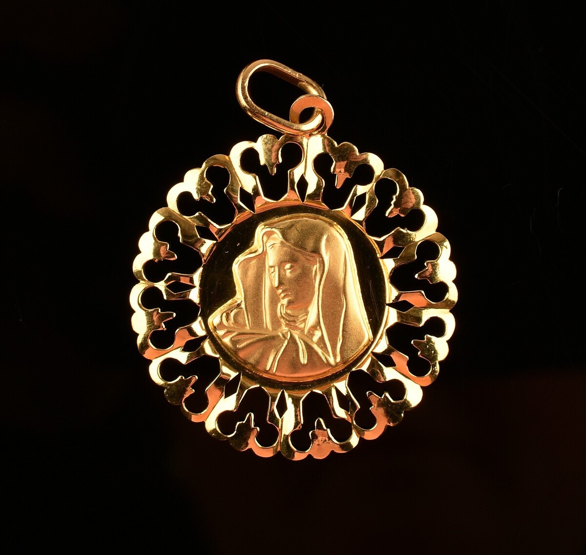 *18k Yellow Gold Filigree Pendant Mother Mary Madonna