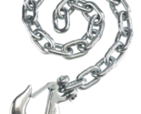 This chain is 35" in length. At the end of the chain is a 3/8 grab hook. This product is made out of grade 43 electrically galvanized steel. The WLL is 5,200 lbs.