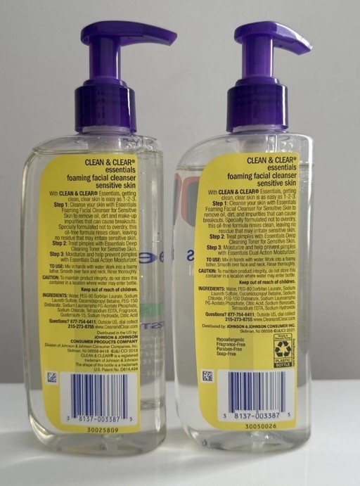- (2) Clean & Clear Essentials Foaming Facial Cleanser Sensitive Skin 8 Oz