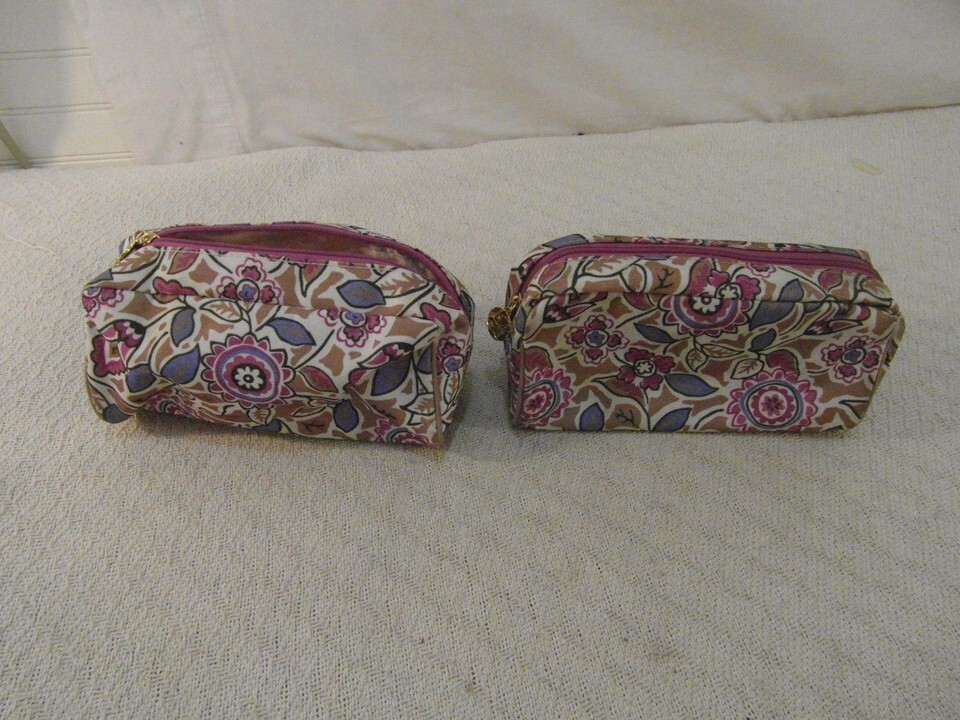 - (2) Estee Lauder White Pink Blue Flower Design 9" X 5" Travel Makeup Bags 34099
