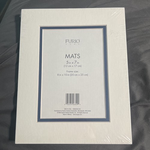 - (2) FURIO HOME Cream and Navy Blue Photo Mats Frame 8X10 Matting 5X7