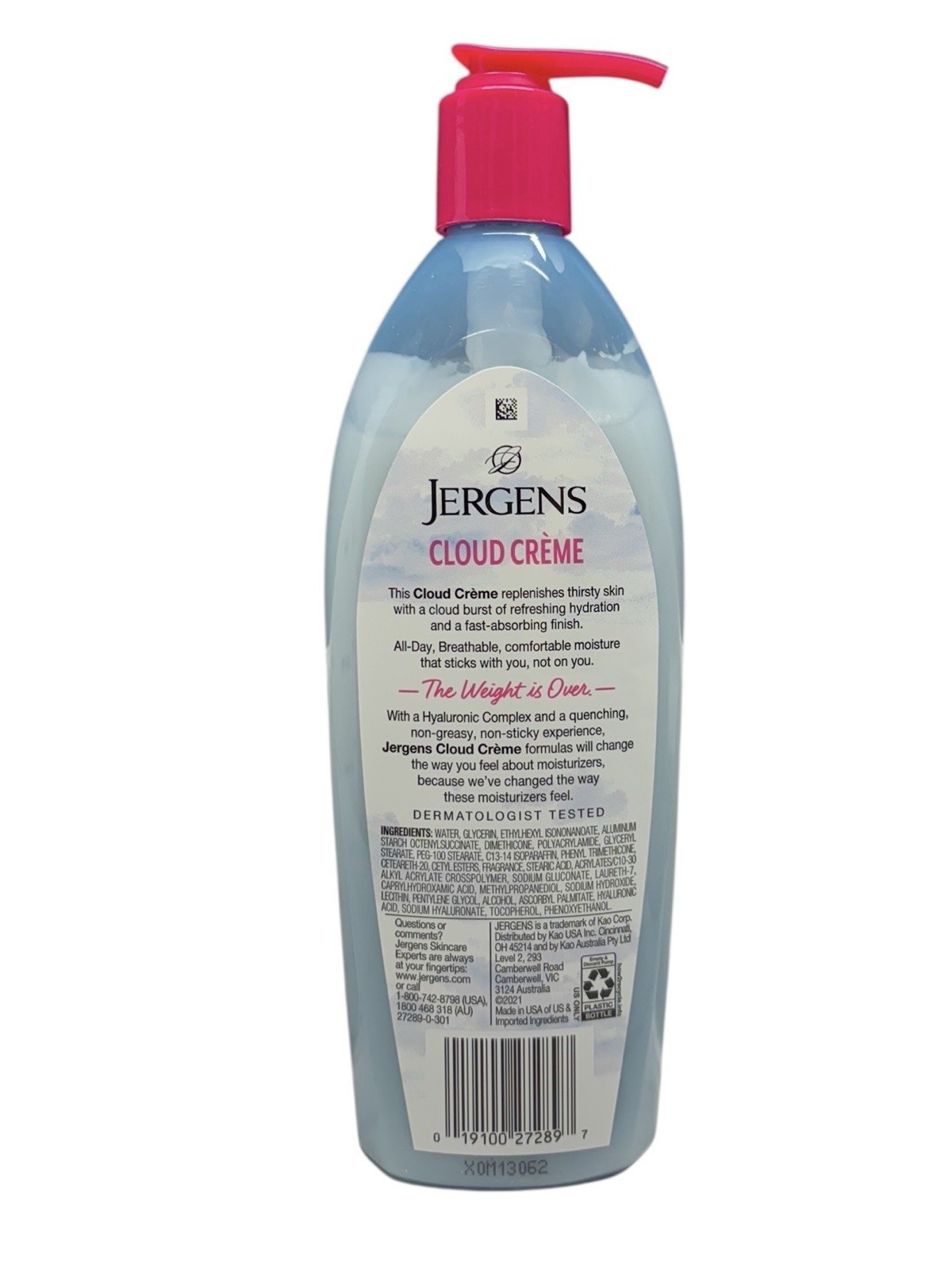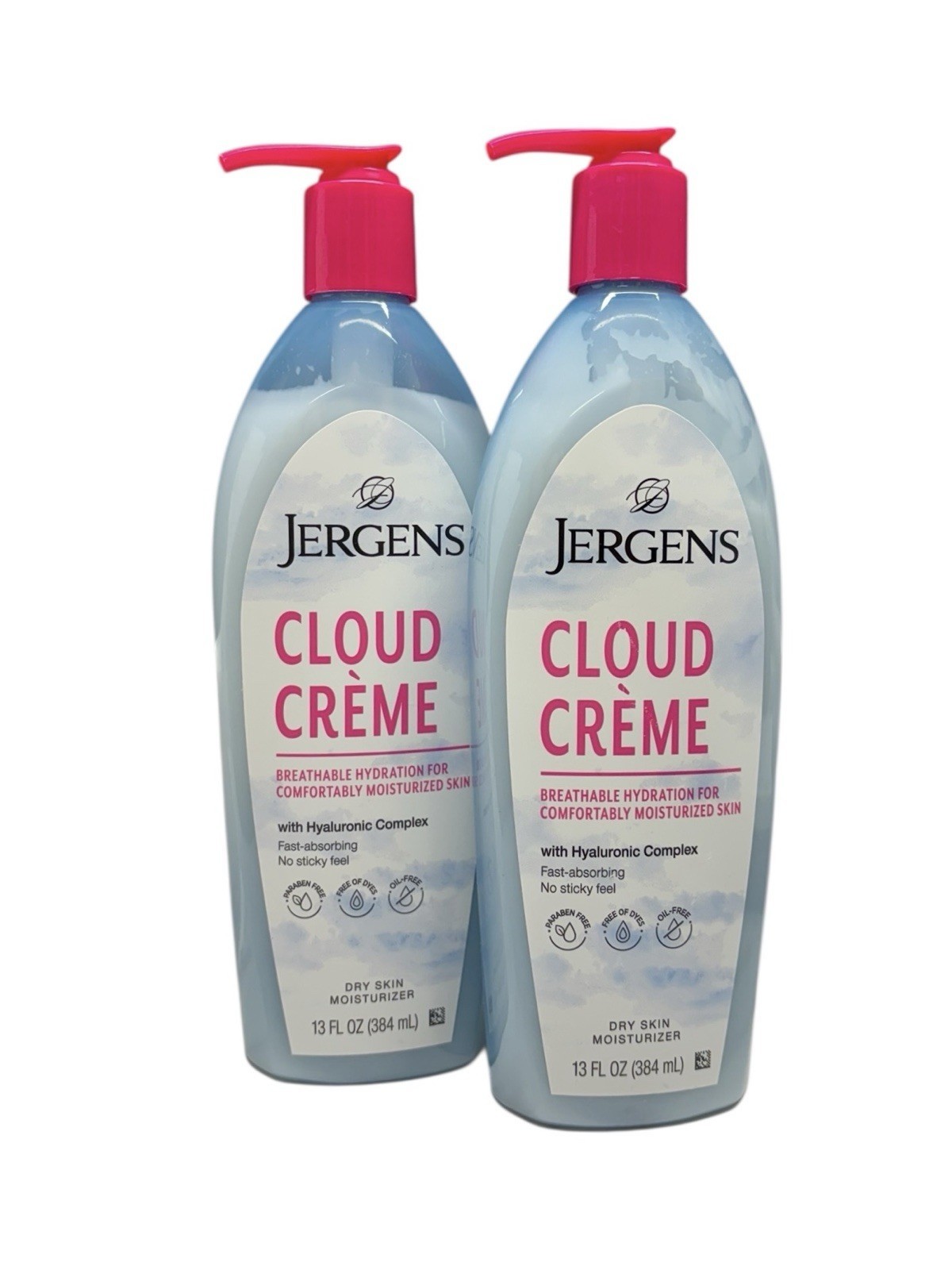 - (2) Jergens Cloud Creme Dry Skin Moisturizer Lotion Hyaluronic Complex 13oz