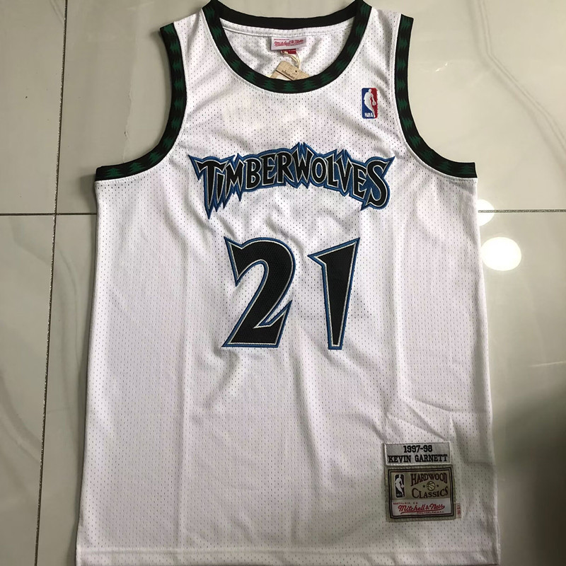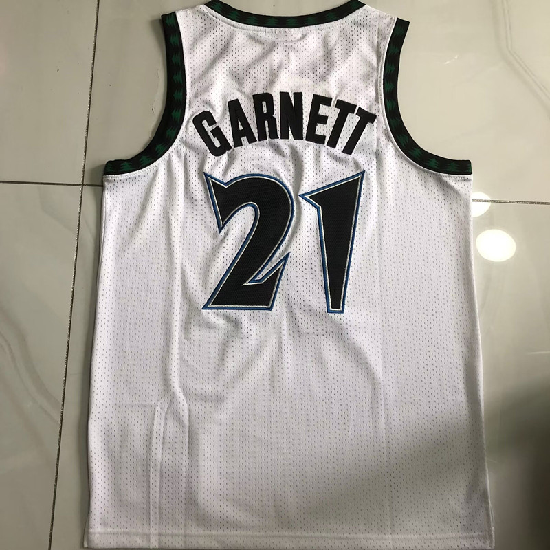 #21 Kevin Garnett White Jersey Minnesota Timberwolves Throwback Style