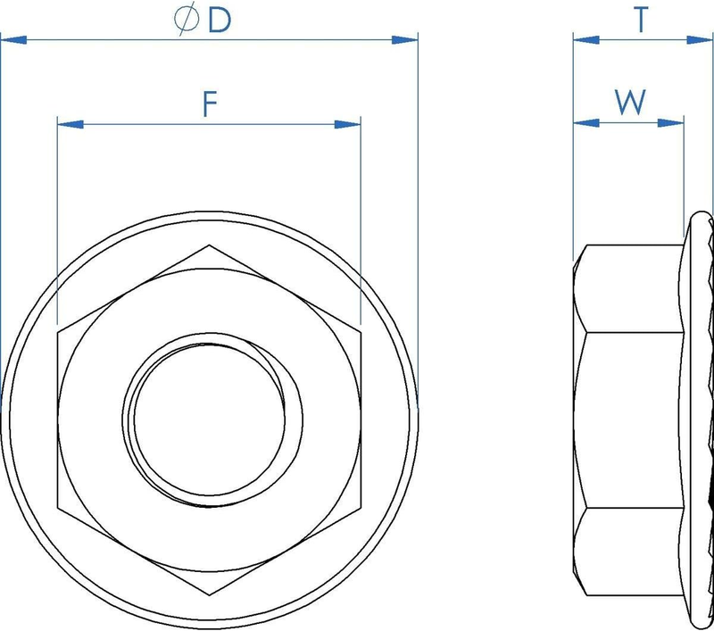 The flange distributes pressure where the nut meets the material surface, eliminating the need for a separate washer. Height includes the flange.