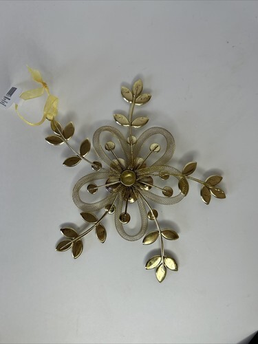 - (3) EvergrChristmas Ornament STAR GOLD 8" CAPIZ SEASHELL Ribbon Hanging-NEW!