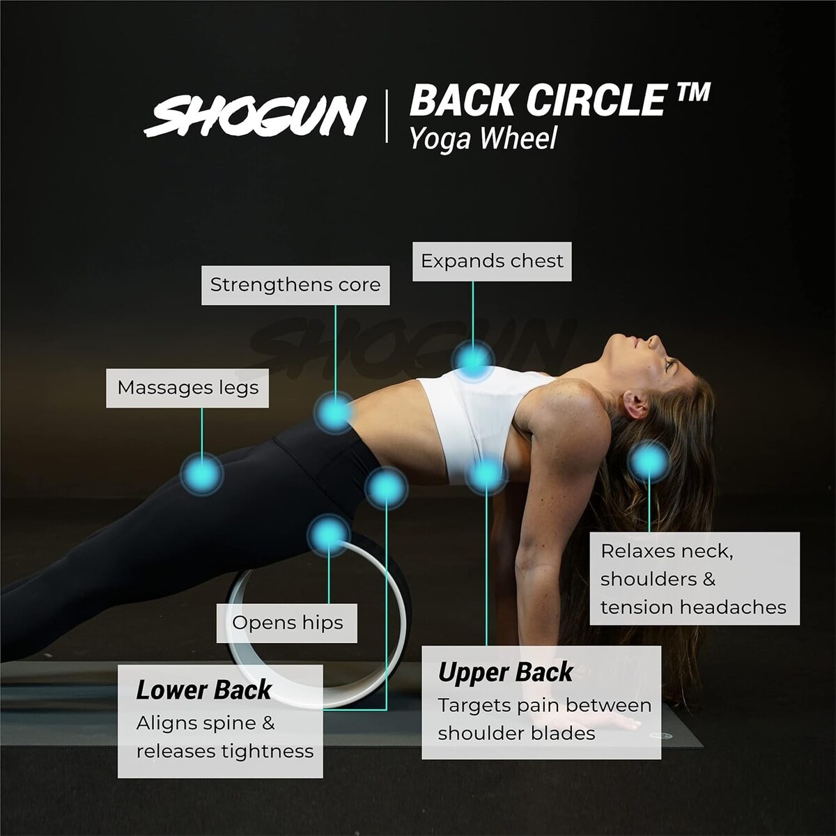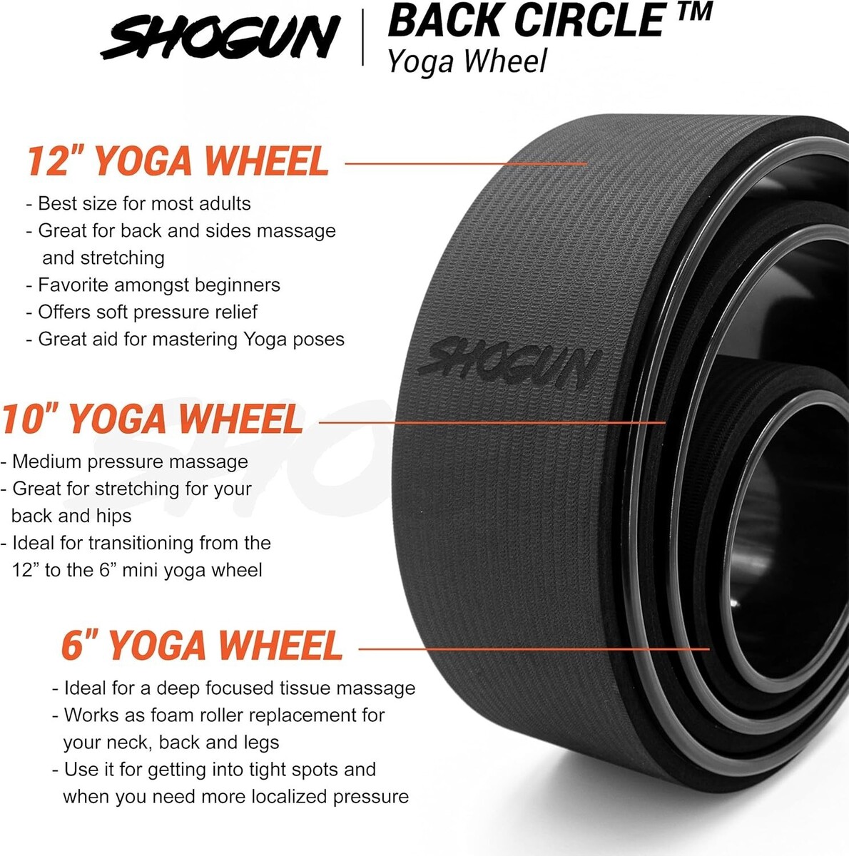IMPROVE YOUR FLEXIBILITY AND REDUCE PAIN: The Shogun Sports Yoga Wheel has been designed to help you improve your flexibility, and help you stretch your hips, abdomen, chest and back. It will massage your spine in a safe yet deep way. Place it between your shoulder blades and roll out to relieve tension and open up your back. Not only does the yoga wheel open your back, it also enhances your flexibility.