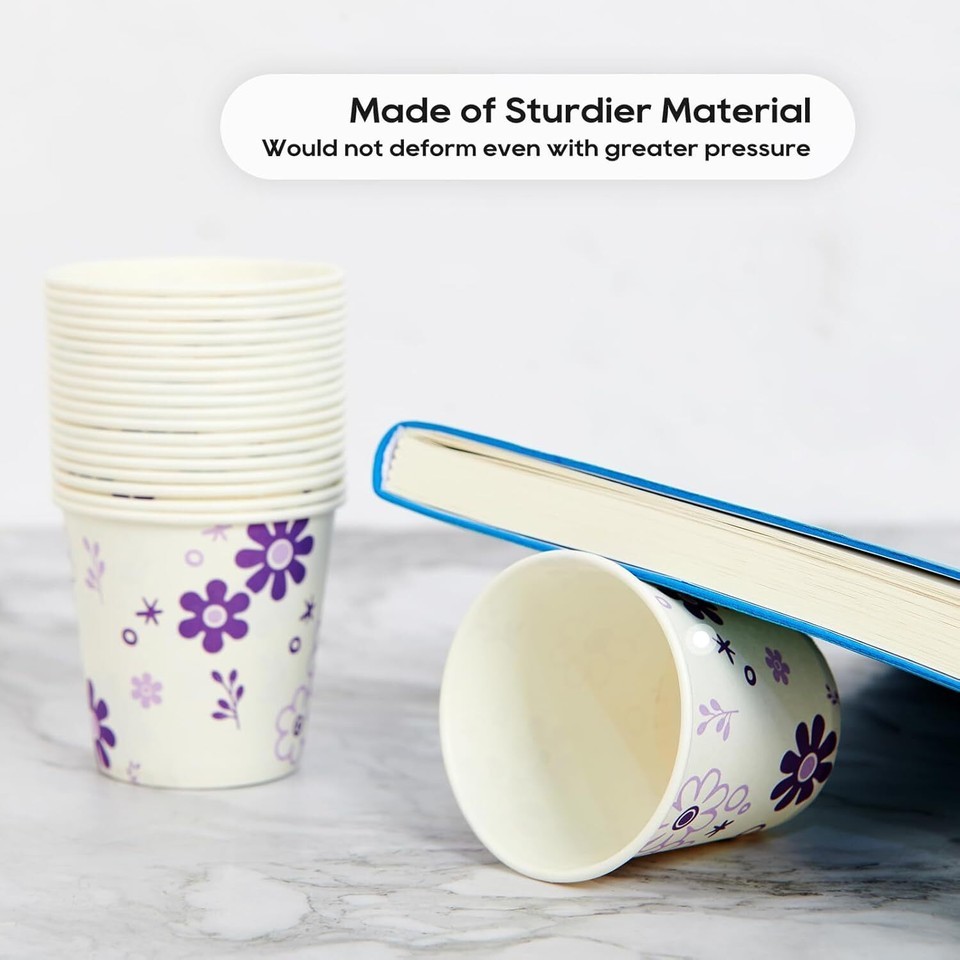 Unique Flower Design - The high-quality sturdy 3 oz paper cups have a vibrant floral design. which is more beautiful and practical than ordinary disposable cups. The petite size is suitable for the kitchen, bathroom, counter, classroom, and office