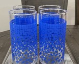 - (4) Vintage Blue Square Block Design Drinking Glasses Tumblers No Markings