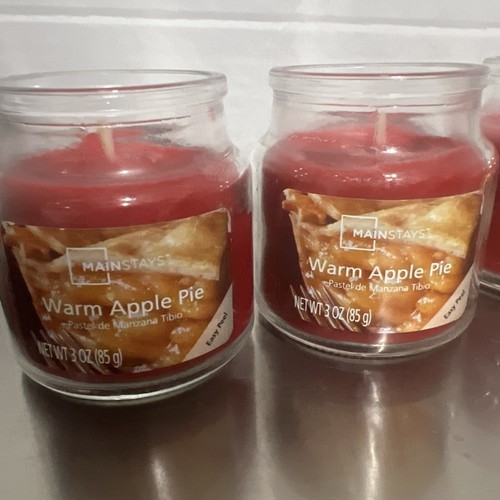 (4) WARM APPLE PIE 3 oz Small JAR CANDLE Mainstays SOY WAX Single Wick Candle