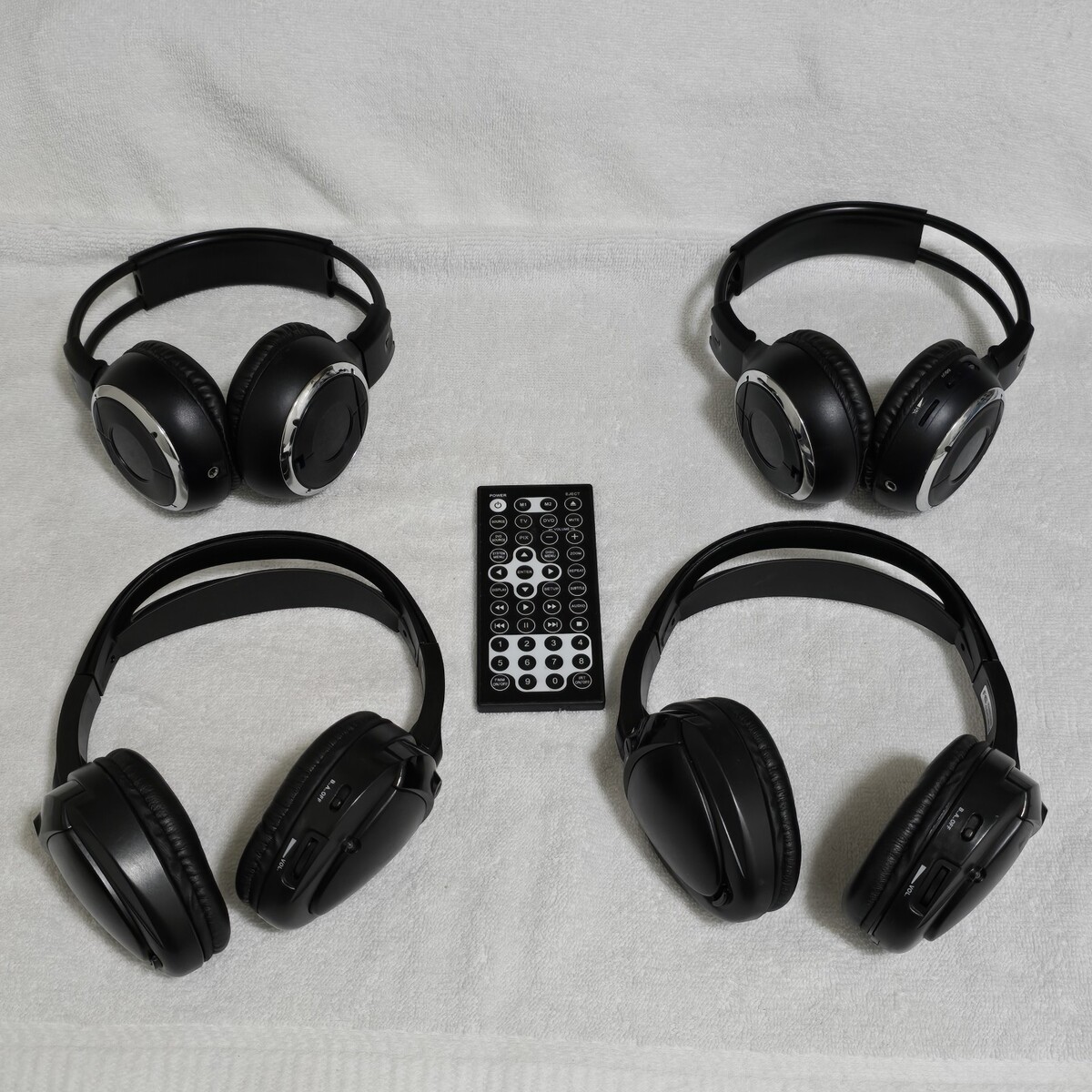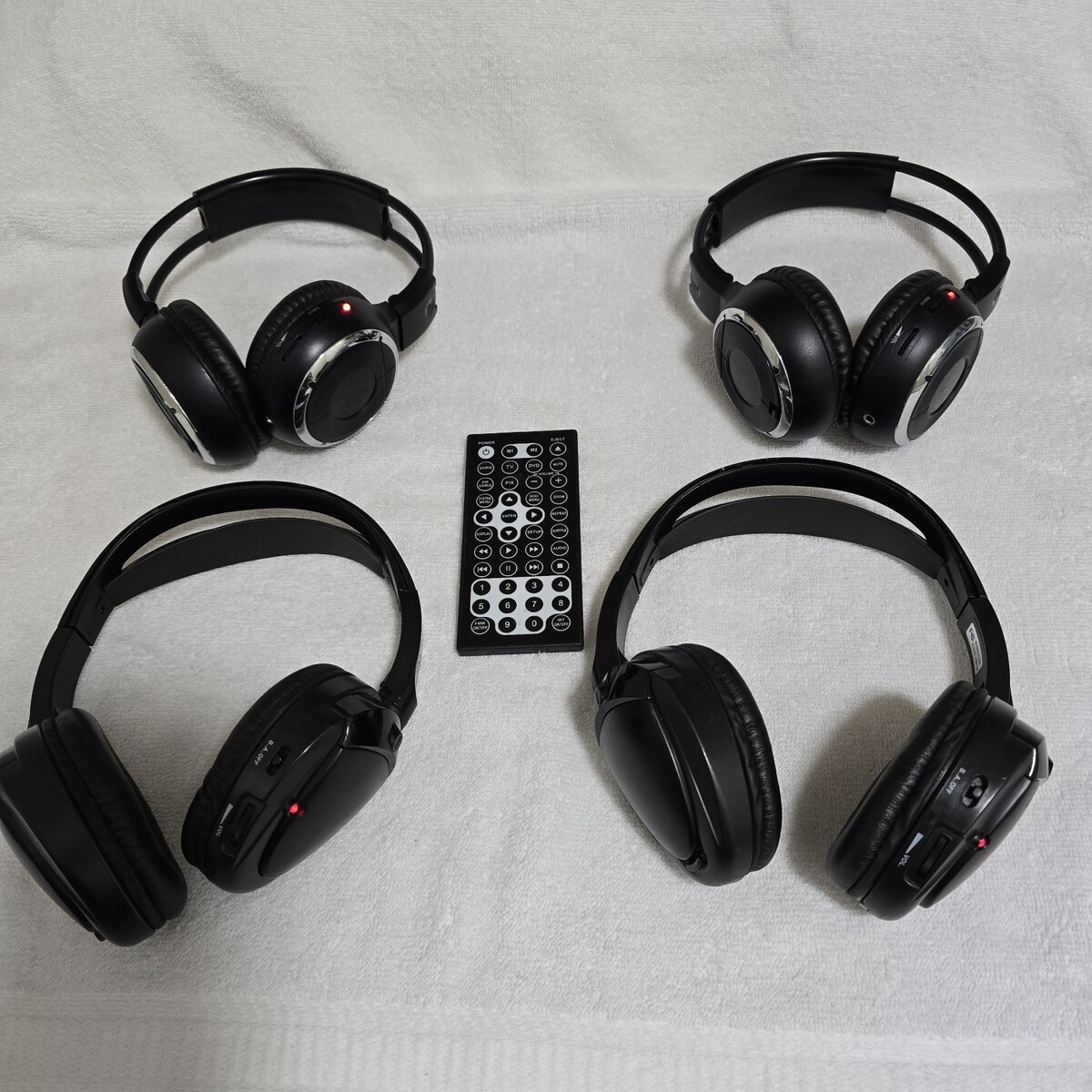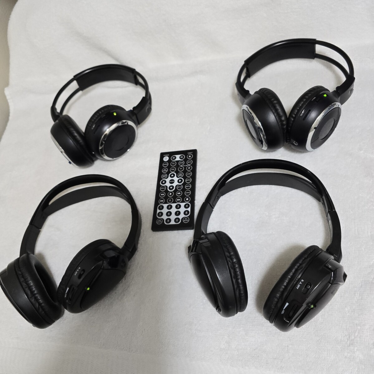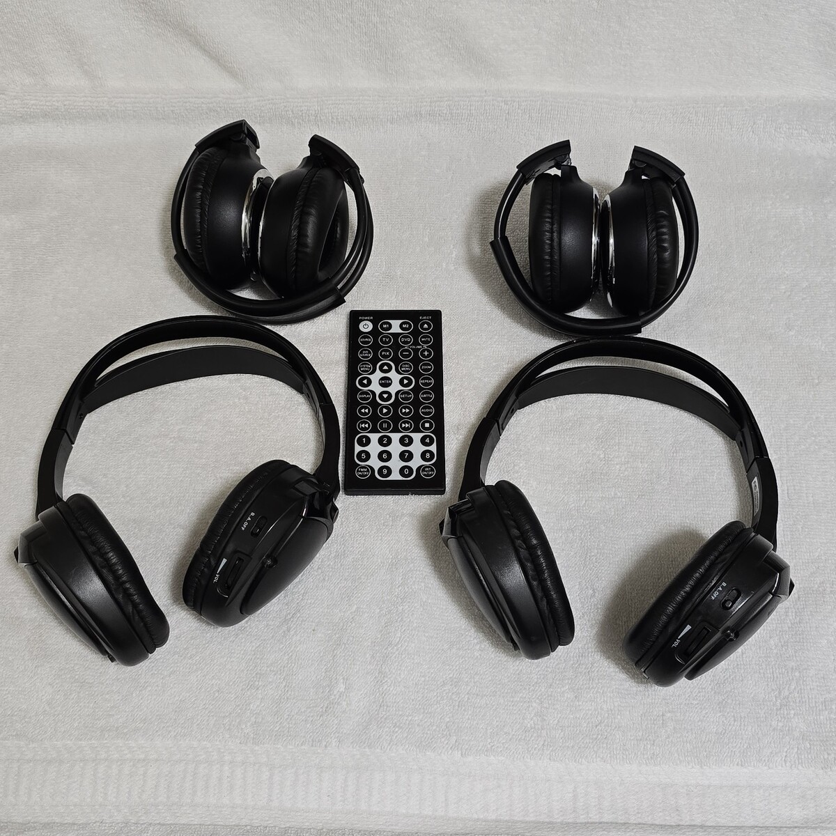 This is a lot of (4) Aftermarket Wireless IR Rear TV / DVD Overear Headphones / Headsets that came out of a 2005 Ford F250 XLT Super Duty Truck. They will fit numerous other vehicles, or you can use elsewhere.