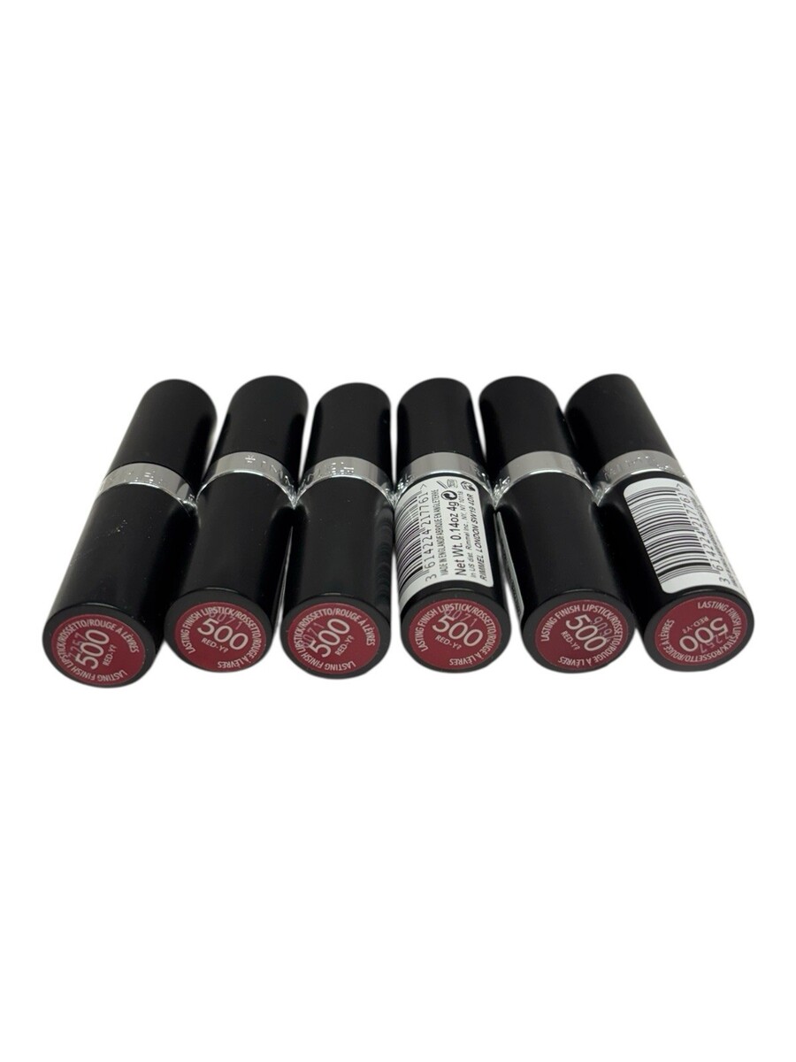 (6) Rimmel London Lasting Finish Lipstick 500 Red-y Ready Redy, New.